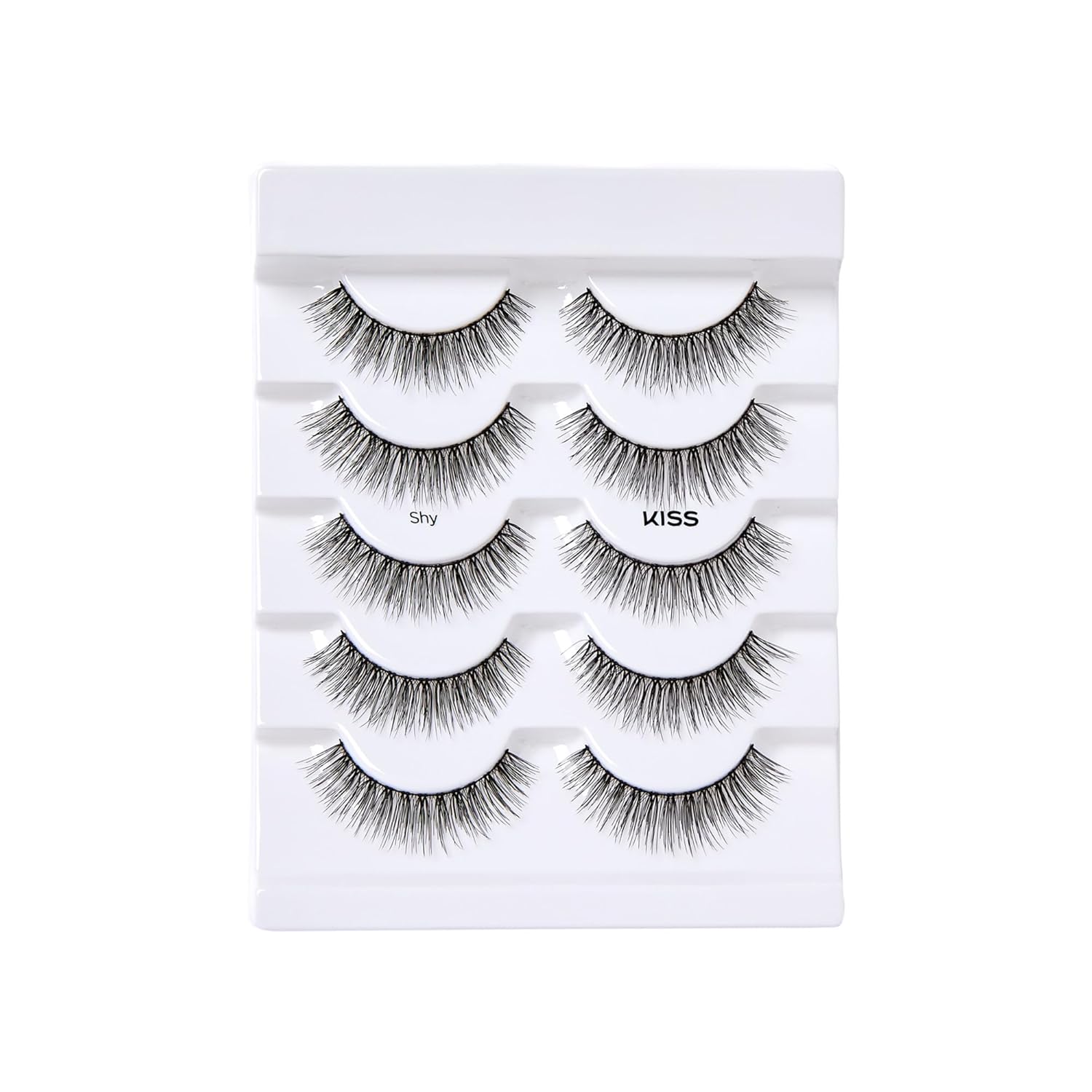 KISS Parece tão natural, cílios postiços, “tímidos”, 12 mm, inclui 5 pares de cílios, compatível com lentes de contato, fácil de aplicar, cílios reutilizáveis, cola