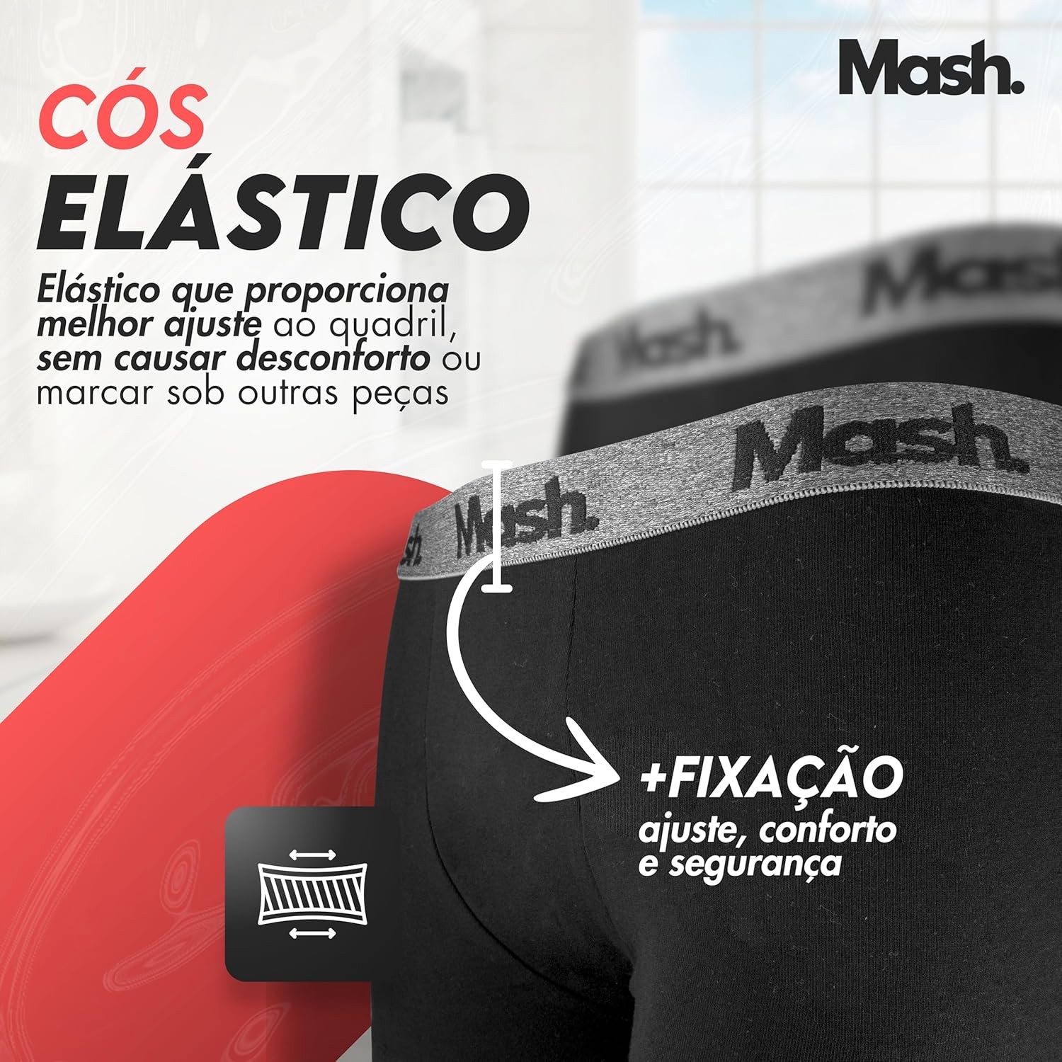 A Mash não tem padrão para tamanho. Já comprei P super apertada. Esta pedi M e ficou um pouco folgada, mas dá pra usar. A qualidade é boa. As cinzas um pouco mais compridas que as pretas. Assim mesmo, mais curtas que a boxer comum