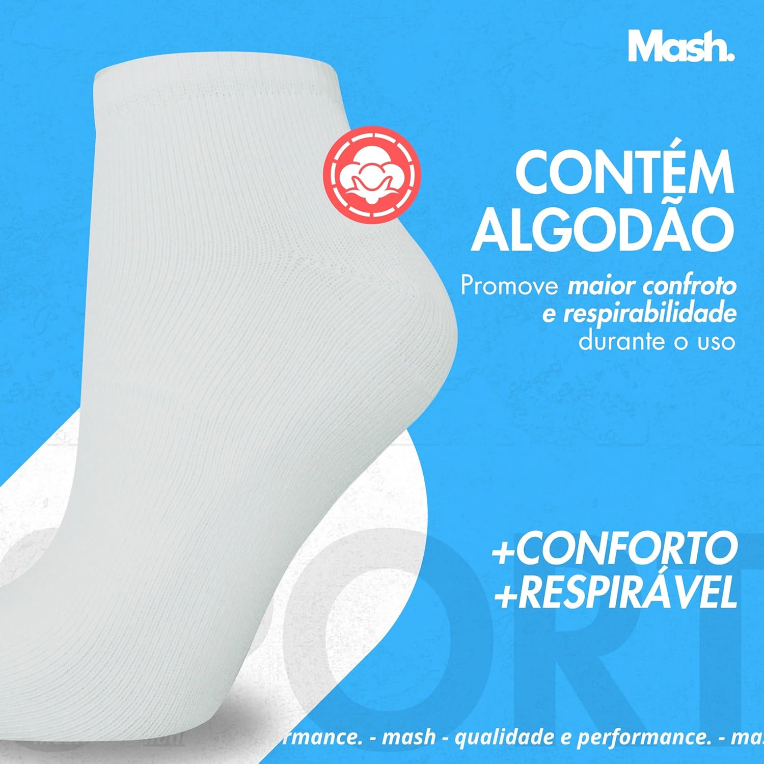 - Kit 10 Unidades: Adquira 10 pares da meia esportiva Mash de forma fácil e prática.