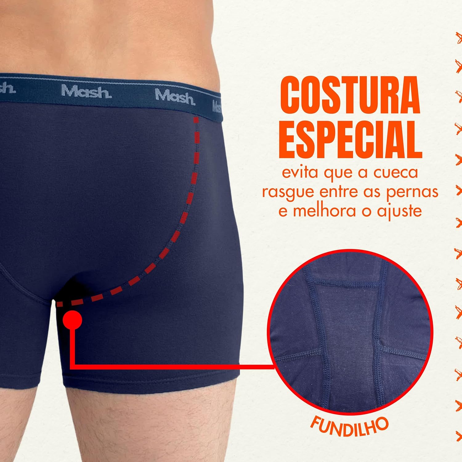 - Costura Especial: Costura reforçada na parte traseira, evitando pontos de atrito e costuras incômodas entre as pernas.