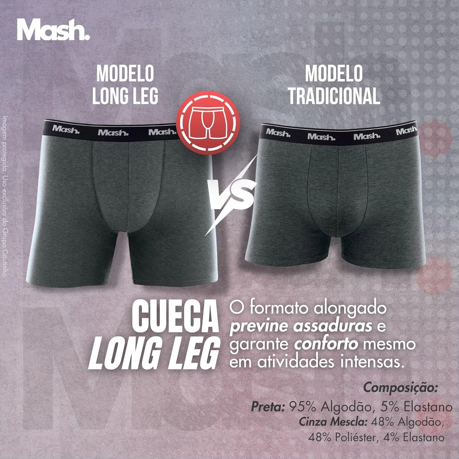 - Kit 2 Unidades: O kit contém 2 unidades de cueca boxer alongada Mash, seguindo a referência de padrão de qualidade e estilo tradicional Mash.