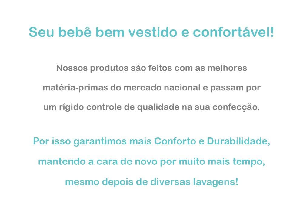- 🛡️ Conforto e proteção: Tecido hipoalergênico, pensado para o bem-estar do bebê