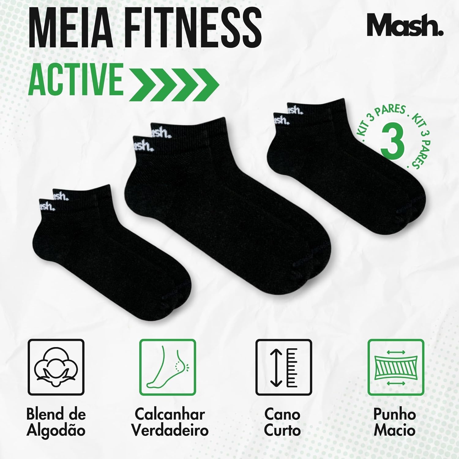 Oferta! Hoje é o melhor dia para comprar Kit 3 Pares Meia Sapatilha Cano Curto Esportiva Active Com Algodão Unissex Mash com aquele preço que você procura e ainda com as melhores condições!