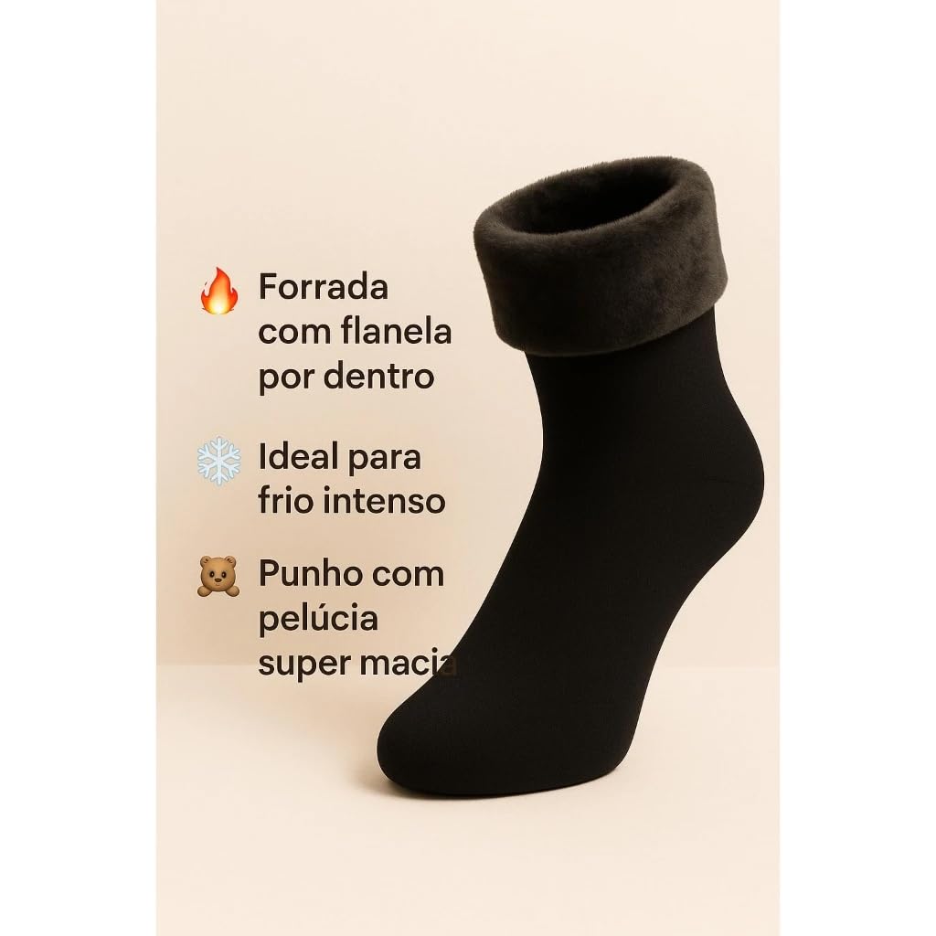 - CONJUNTO TÉRMICO: Kit com 3 pares de meias térmicas flaneladas, cano curto, perfeitas para proteção contra o frio intenso durante o inverno