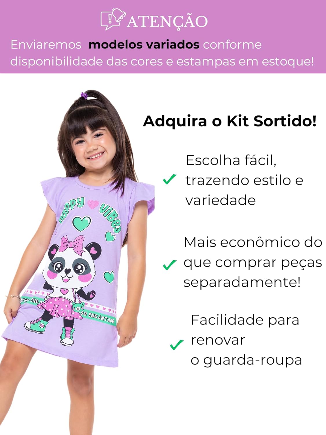 Olá, sou o consultor Juarez. Veja abaixo as melhores oportunidades para Kit 3 Vestido Infantil Menina Verão Estampados 100% Algodão com Mangas Franzidas