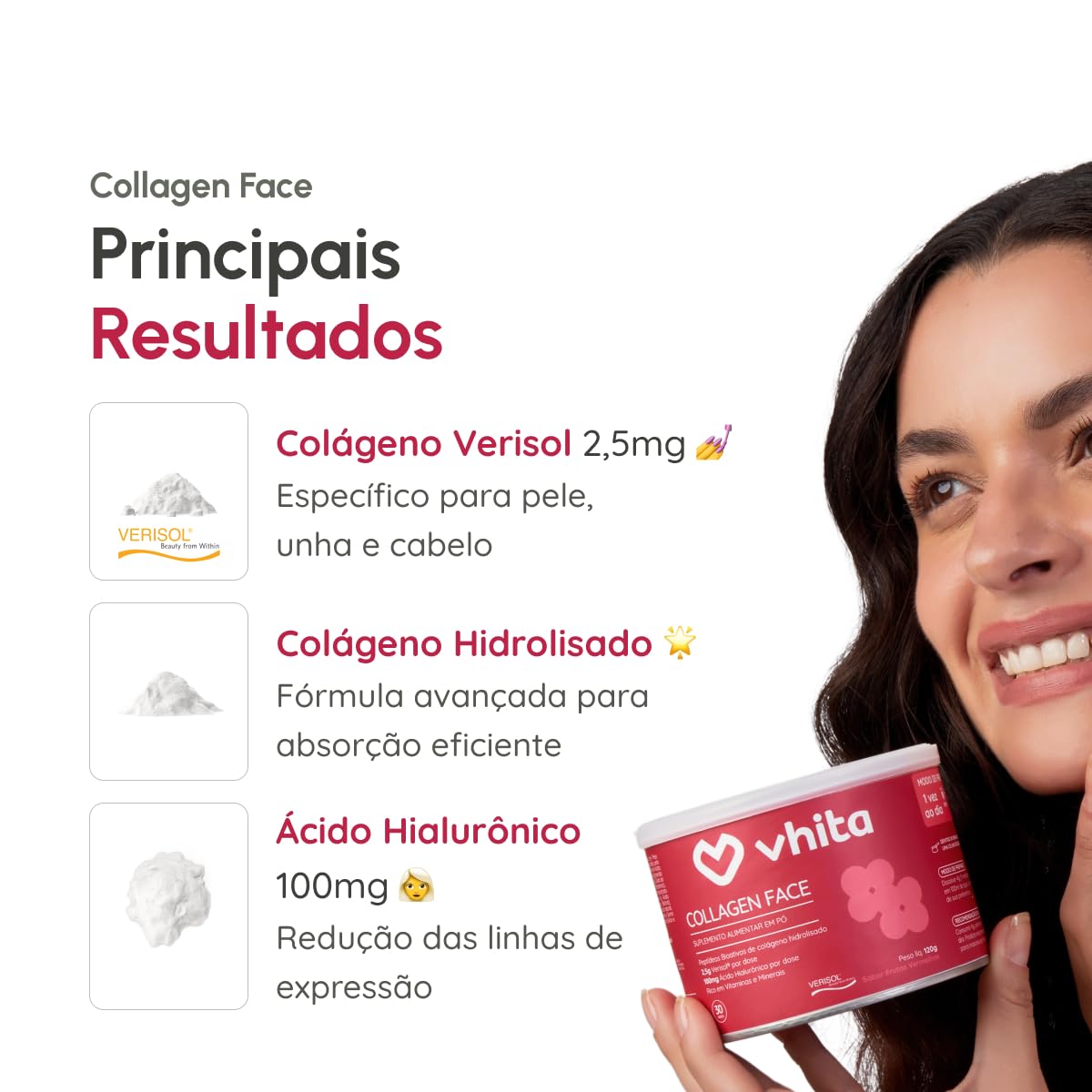 Olá, sou o consultor Juarez. Veja abaixo as melhores oportunidades para Kit 6 Collagen Face – Colágeno hidrolisado Verisol, ácido hialurônico e vitaminas – Frutas 120g – Vhita