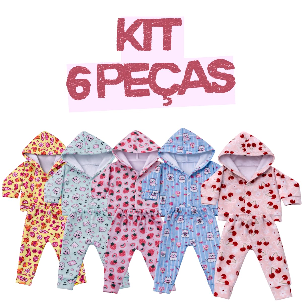 - ❄️ Kit completo com 6 peças: são 3 conjuntos soft, cada um com blusa de manga longa com touca e calça combinando.