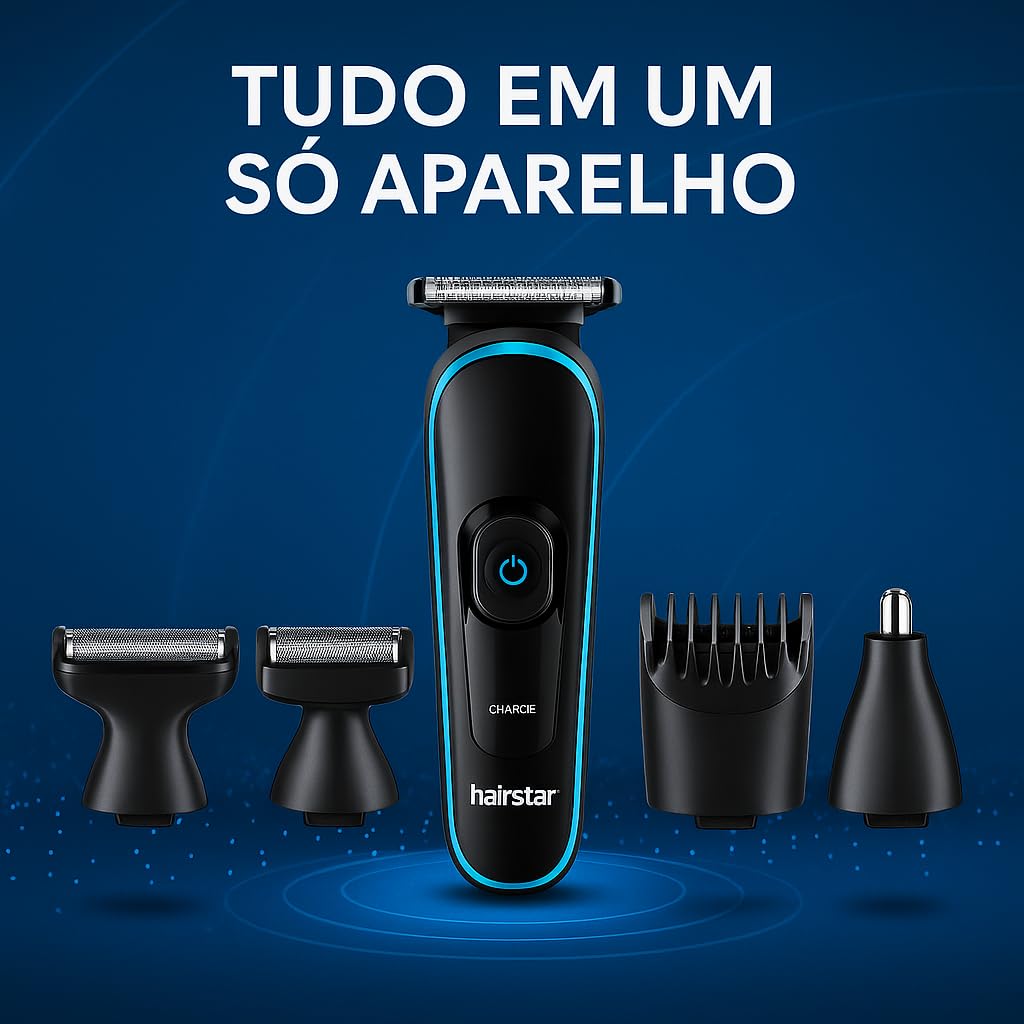- ✅ 5 em 1 Multifuncional – Barba, cabelo, nariz, orelhas e acabamento de contorno. Tudo em um único dispositivo compacto e poderoso.