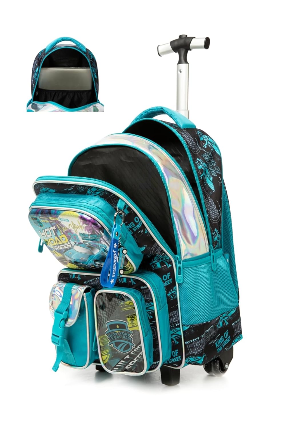 - FUNCIONALIDADE: Mochila com alça telescópica ajustável e rodinhas resistentes para fácil transporte dos materiais escolares