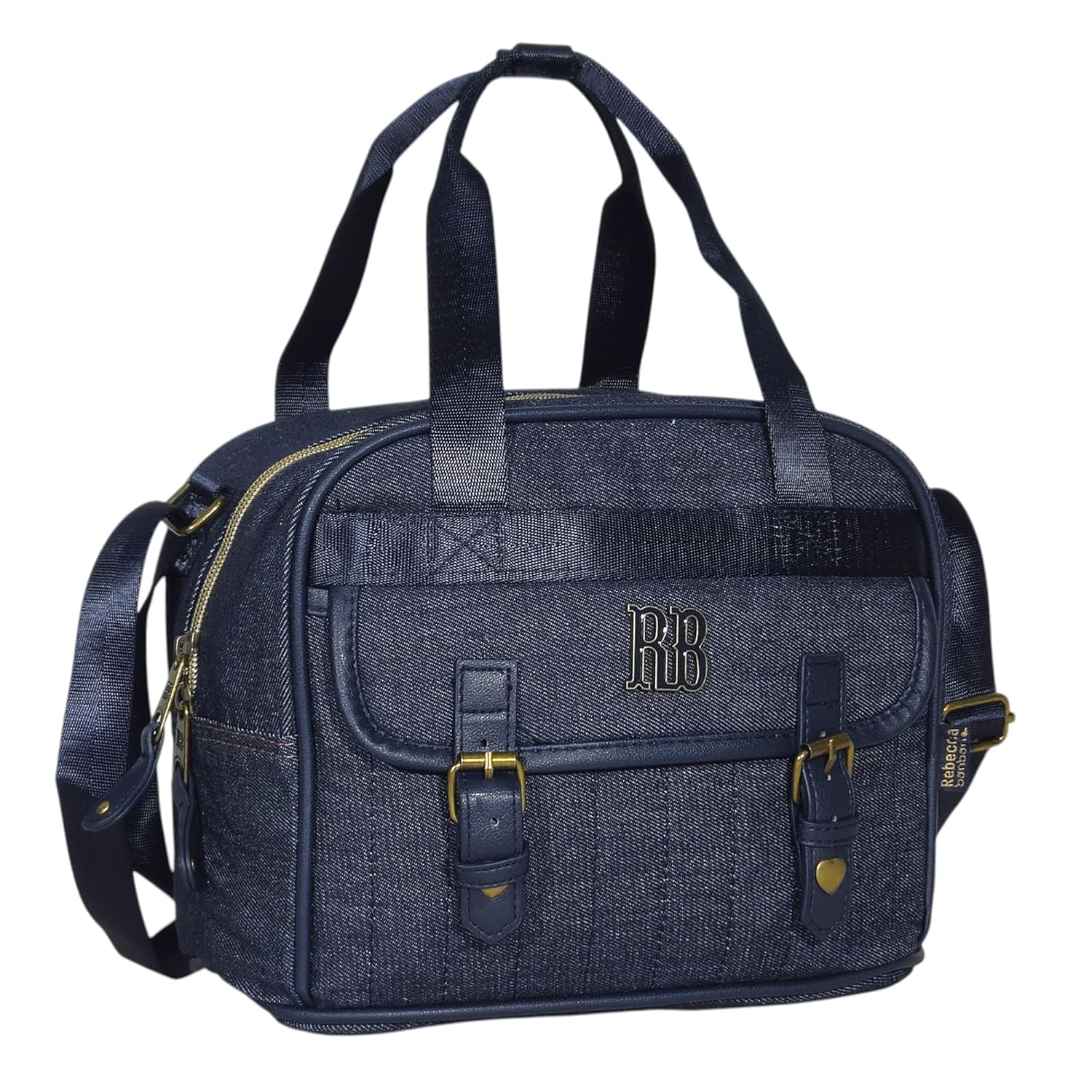 - MATERIAL RESISTENTE: Confeccionado em tecido jeans durável com detalhes em zíper dourado e acabamentos reforçados