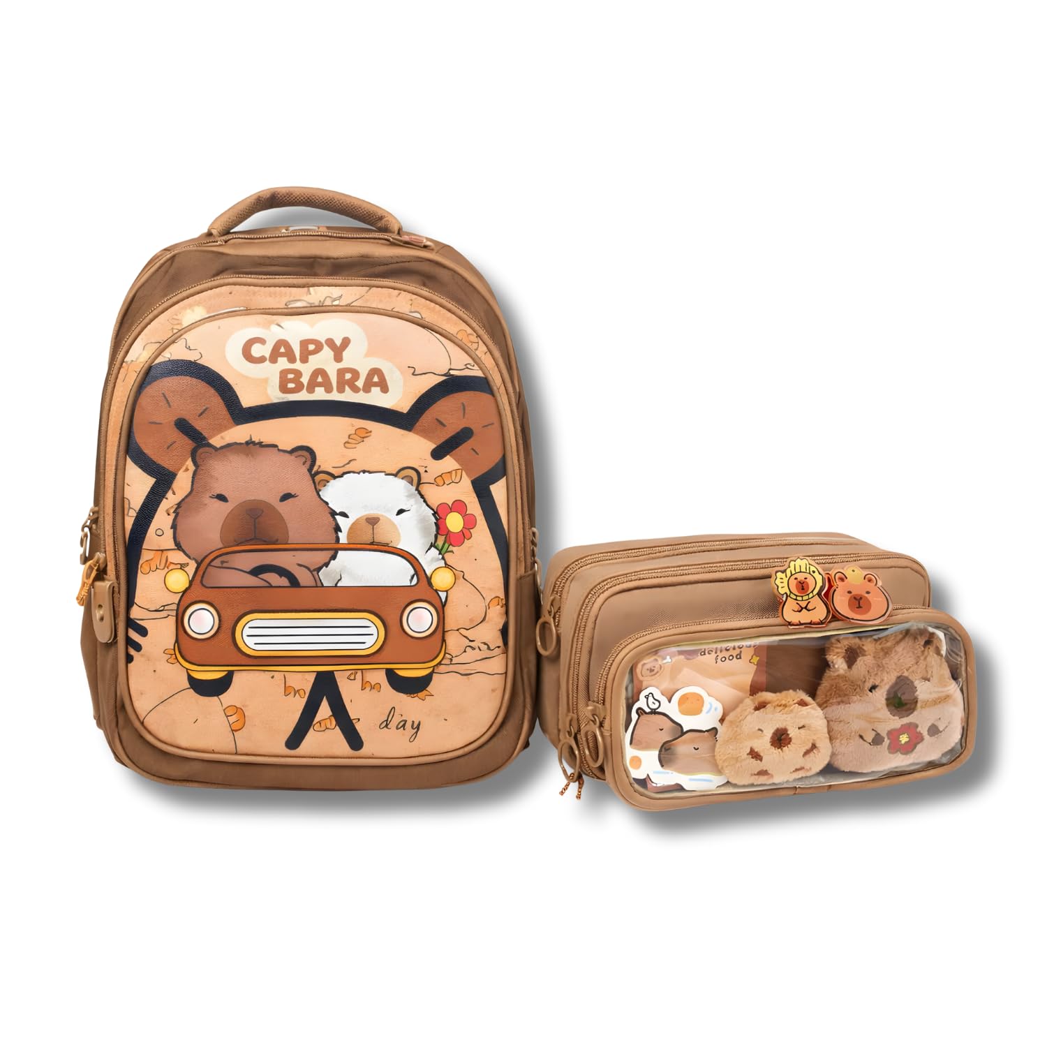 Oferta! Hoje é o melhor dia para comprar Kit Mochila Capybara Resistente à Água + Estojo Temático (Capybara ou Panda) com Adesivos e Bonecos Surpresa | Reforçada e Super Espaçosa com aquele preço que você procura e ainda com as melhores condições!