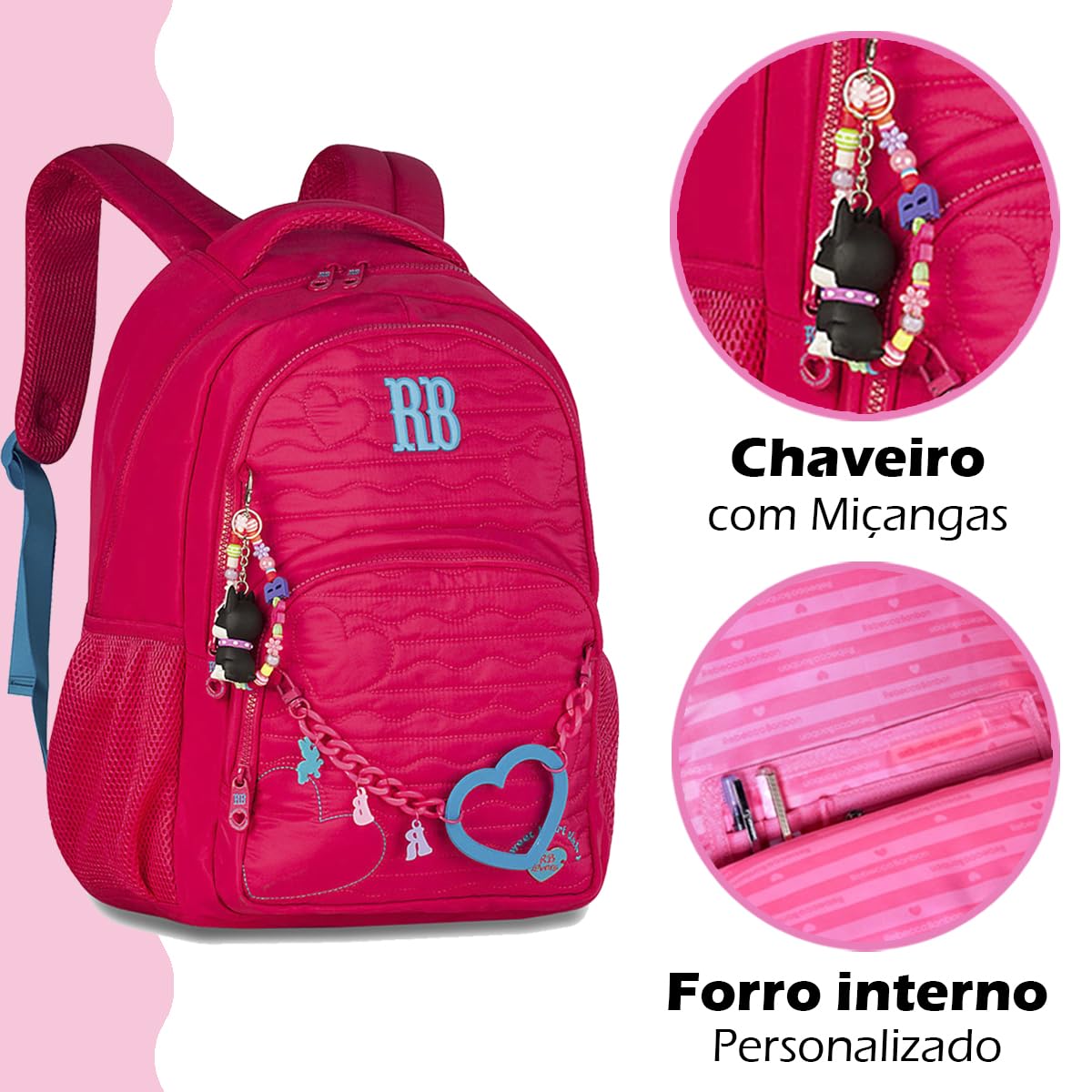 - CONJUNTO COMPLETO: Kit escolar Rebecca Bonbon com mochila principal, lancheira, estojo e garrafa personalizada
