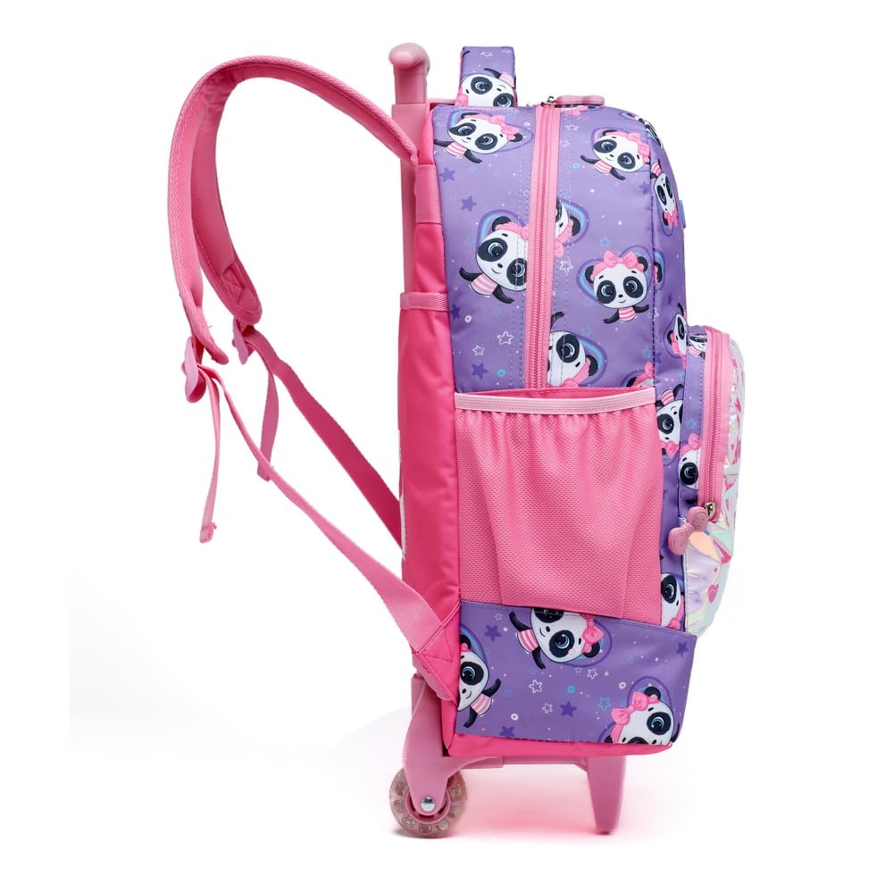 Kit Material Escolar Completo com Mochila de Rodinhas, Lancheira Térmica e Estojo Box 100 Pens, Compartimento para Notebook, Alça Telescópica, P/Meninas Juvenil