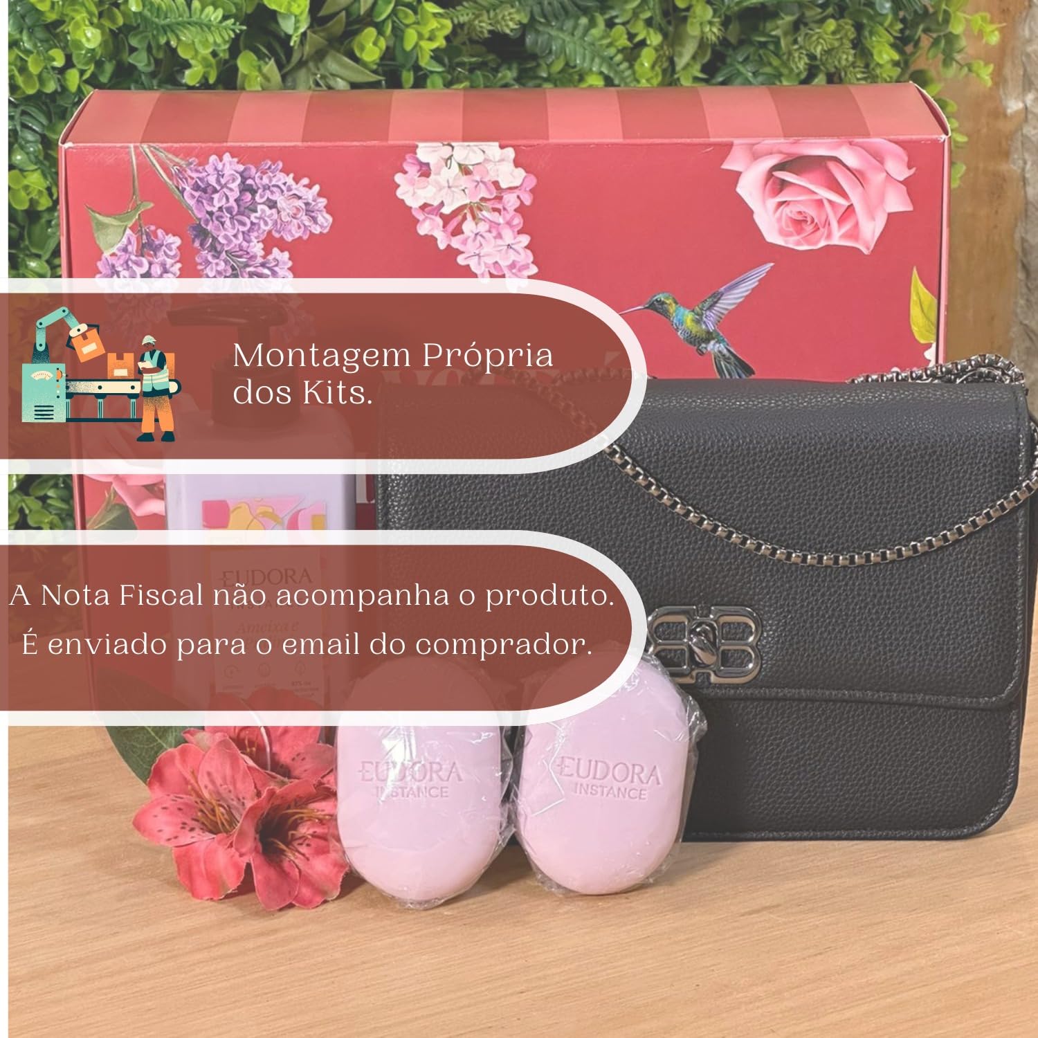 Presente completo com bolsa moderna e produtos Eudora originais