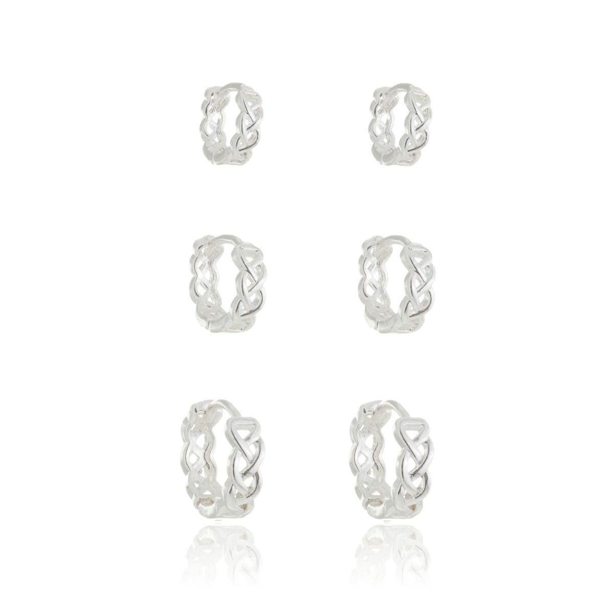 Kit Trio de Brinco com 3 Argolas Trançadas Douradas Folheado Ouro 18k