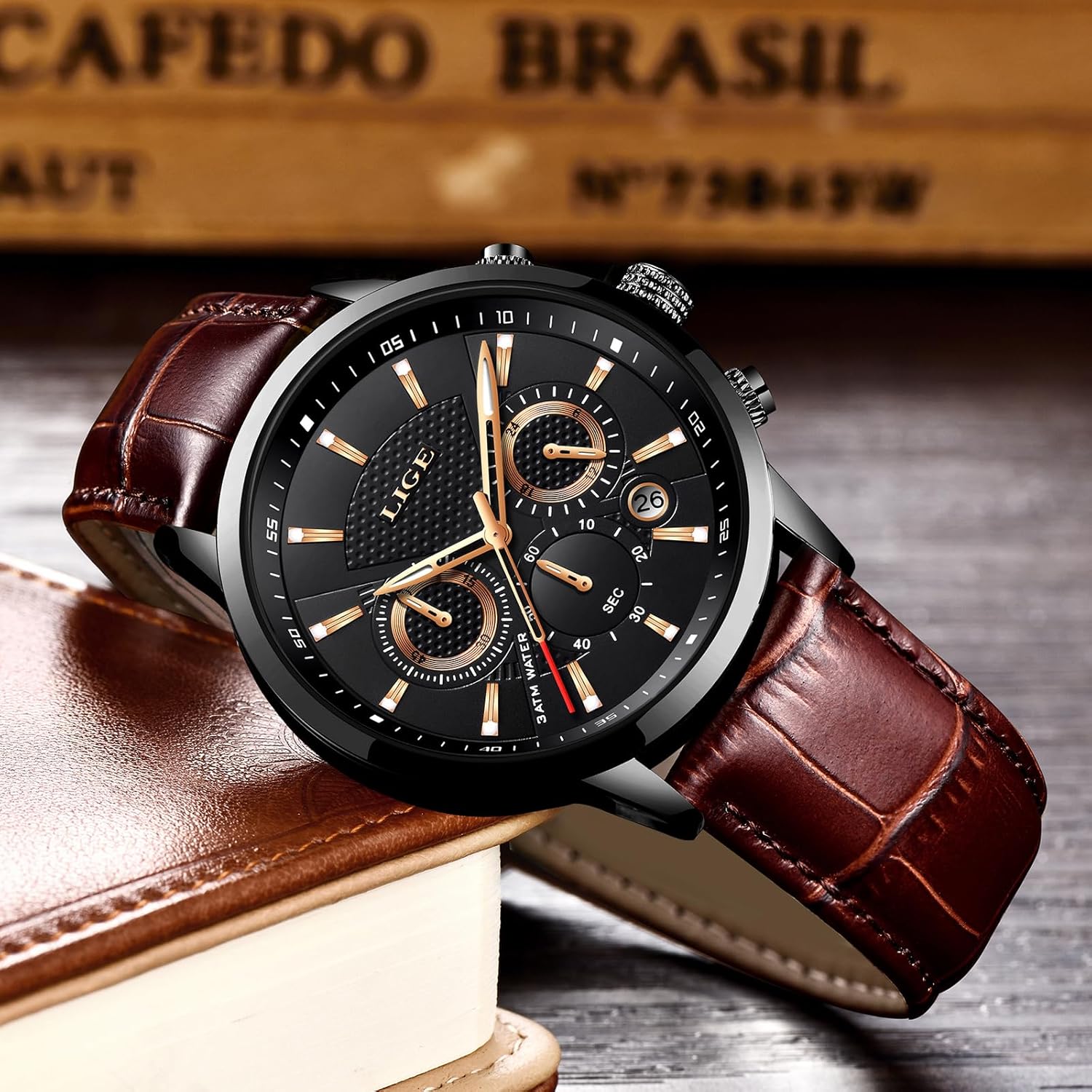Oferta! Hoje é o melhor dia para comprar LIGE Relógios masculinos com cronógrafo, de couro, à prova d’água, analógico, quartzo, aço inoxidável, negócios, clássico, masculino com aquele preço que você procura e ainda com as melhores condições!