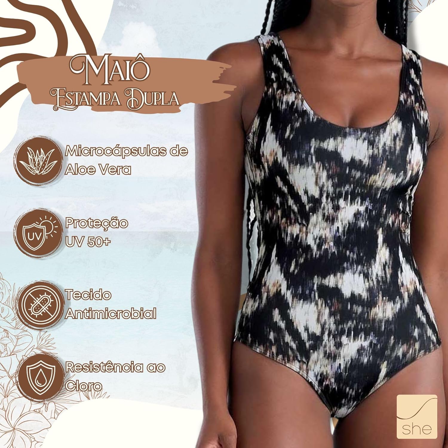 Maiô De Praia Estampa Dupla Alças Largas Sem Bojo Uv 50+ She