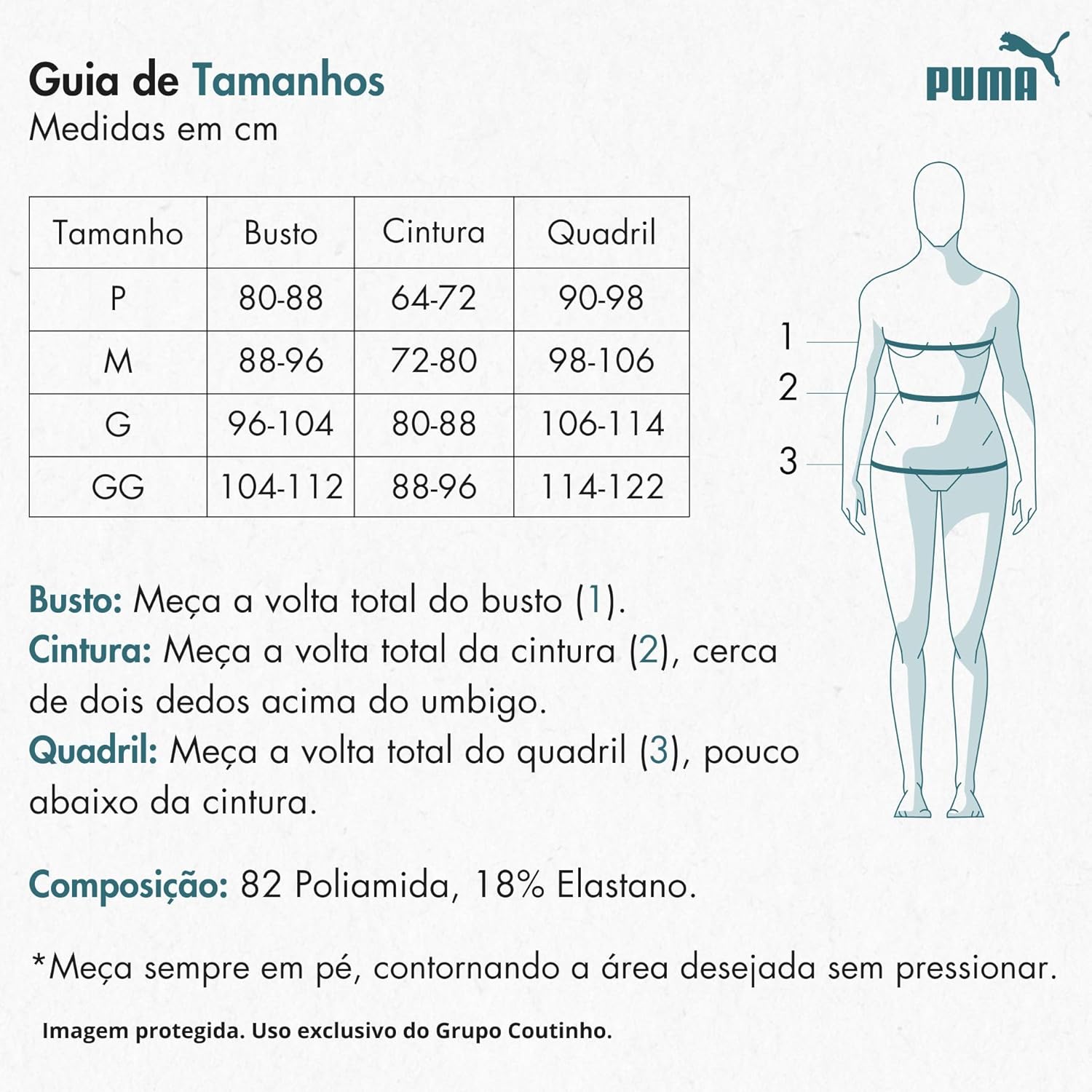 - OEKO-TEX: Certifica que o maiô é um modelo sustentável e não tóxico, garantindo que os produtos PUMA sejam seguros para uso e amigáveis do meio ambiente.