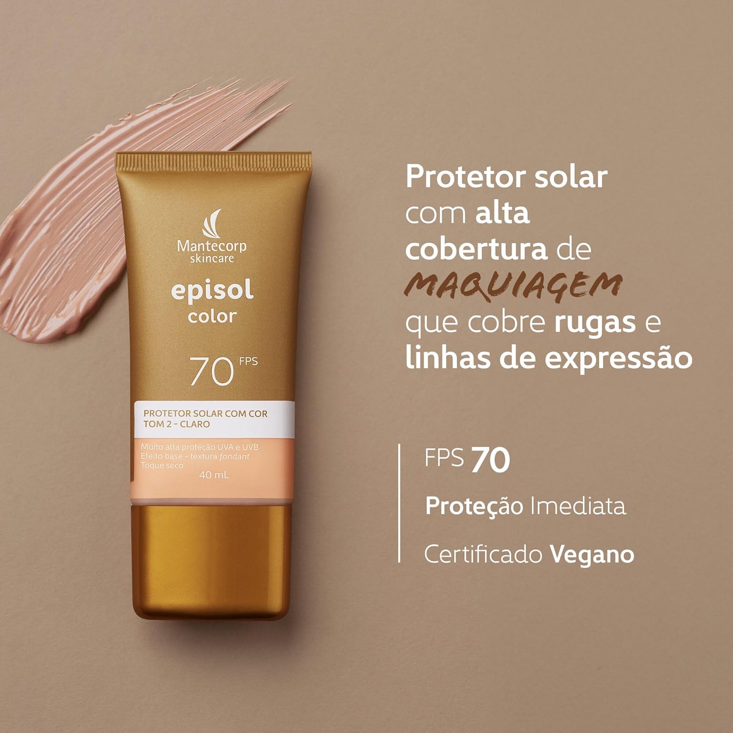 - Em amazon.com.br você pode comprar MANTECORP - Protetor Solar Facial Episol Color FPS 70 - Efeito Base, Alta Proteção UVA e UVB, Toque Seco, Rápida Absorção - Tom 3 Médio - 40ml por apenas R$ 68,04 , que é 86% menor que o custo em Shopee (R$ 502,67).