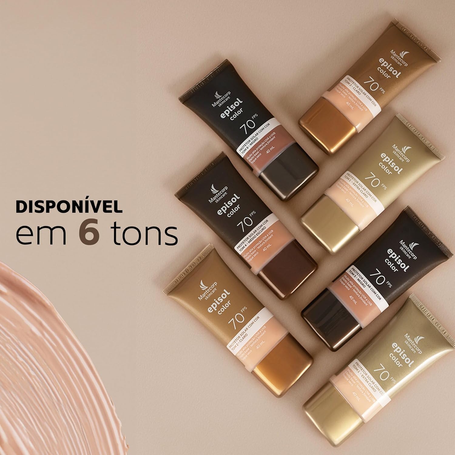 Especificação: MANTECORP – Protetor Solar Facial Episol Color FPS 70 – Efeito Base, Alta Proteção UVA e UVB, Toque Seco, Rápida Absorção – Tom 2 Claro – 40ml