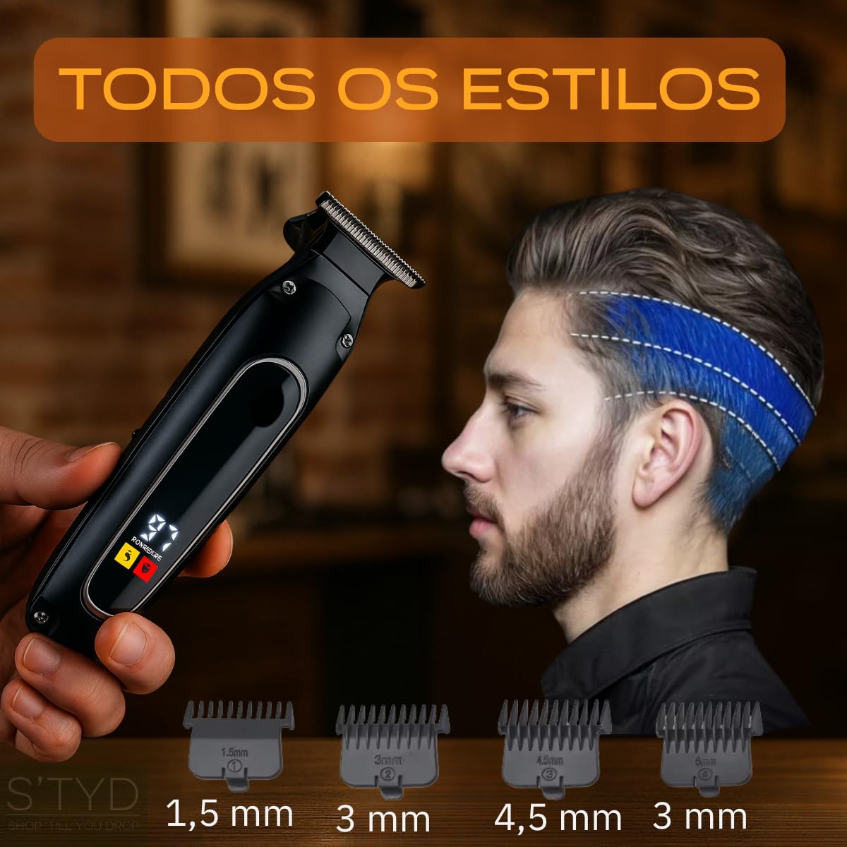 DESIGN PREMIUM: Aparador de cabelo profissional com design ergonômico e elegante, equipado com lâmina de titânio para cortes precisos