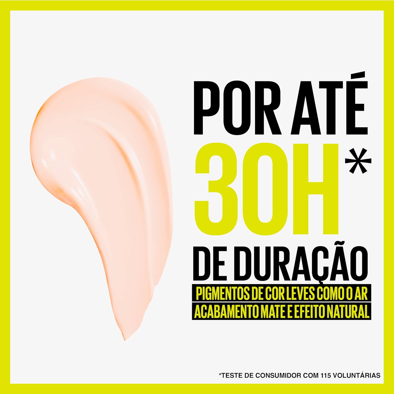 - Com duração de até 30 horas*, esta base forma um filme resistente e flexível sobre a pele, mantendo o tom natural da pele e sem necessidade de retoques ao longo do dia. *Teste com 115 voluntárias.