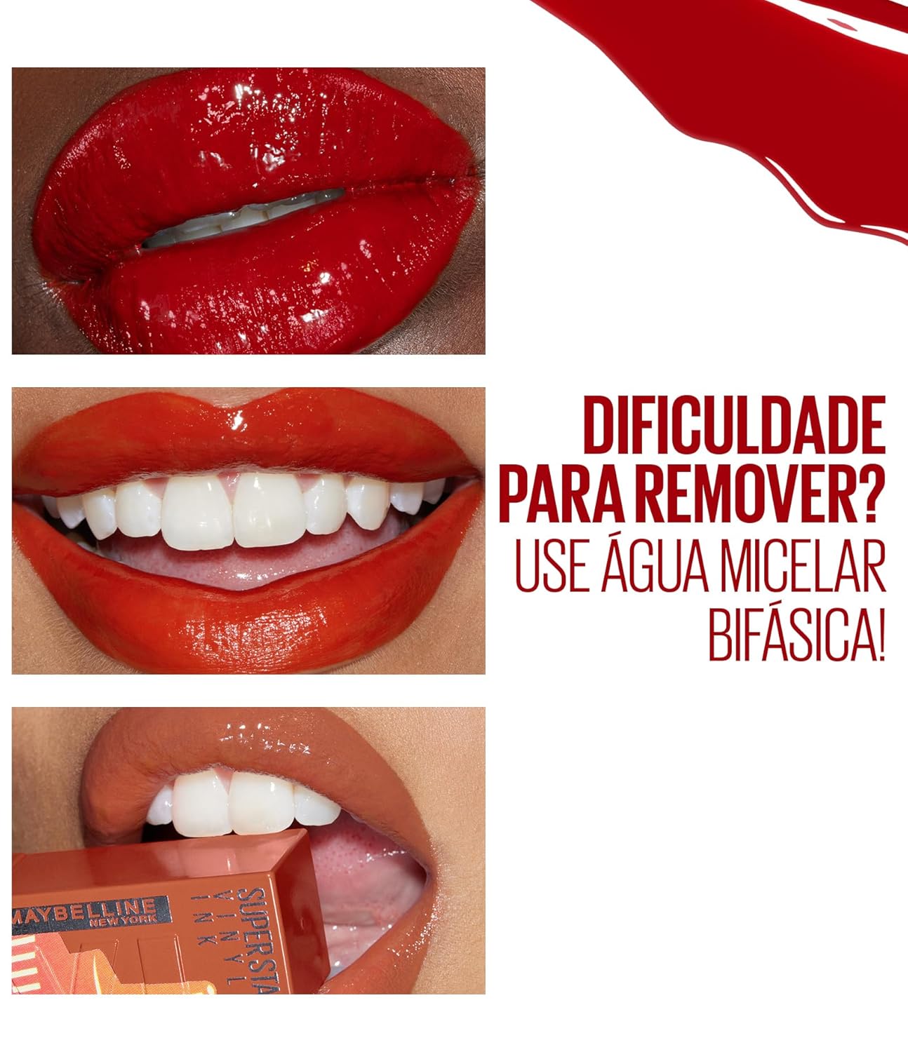 - Contém 4,2ml do Batom Líquido Maybelline NY SuperStay Vinyl Ink Sauce, Edição Limitada, com fórmula 100% vegana e alta tecnologia de fixação.
