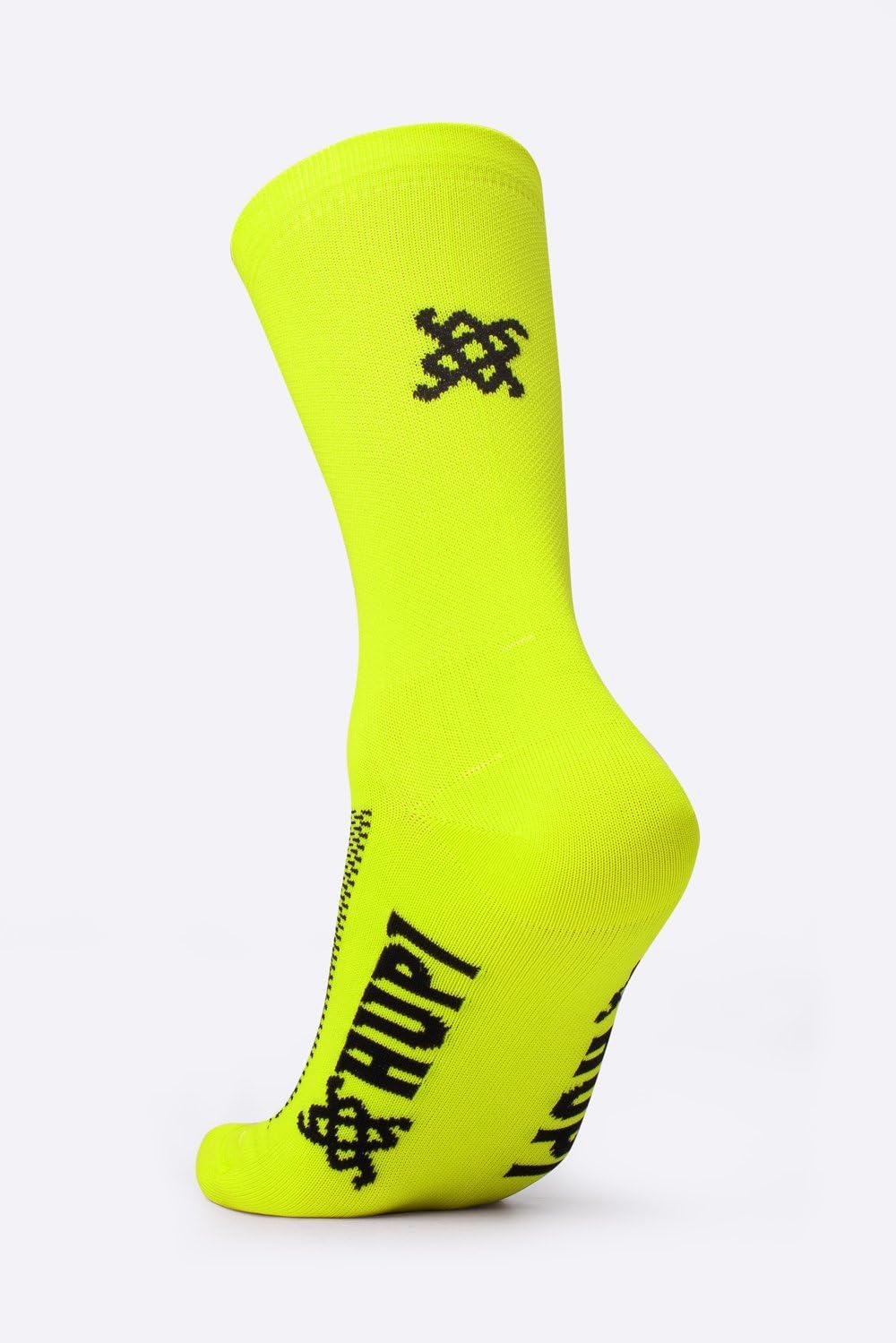 - Meia cano médio na cor amarelo neon, ideal para destaque e visibilidade durante atividades esportivas ou casuais
