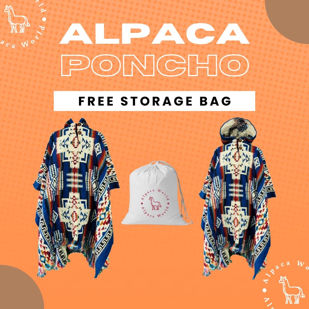 This poncho-style serape is wonderful! I was worried this would show up looking like a ill-advised costume, but it surpassed my expectations. It is HUGE and great quality materials, I would have paid double. I love the hybrid material (70 alpaca/30 recycled orlon) because I was able to wash AND dry the garment, and it looked stunning out of the drier, softer than before. It is lightweight and keeps me warm in 25-30 degree weather with only a thermal underneath. Love the hood, too! I’m bald, so always love a hooded top. If you’re on the fence about this item, go for it! Definitely worth it! PS- I’m a backpacker, the serape only weighs 1 lb.! Water resistant (stands up to a light drizzle, in my experience), dried in about 30 minutes in the sun, folded in half lengthwise it is as big as my sleeping bag, and it easily added 20+ degrees to my bag- the ultimate camp blanket!
