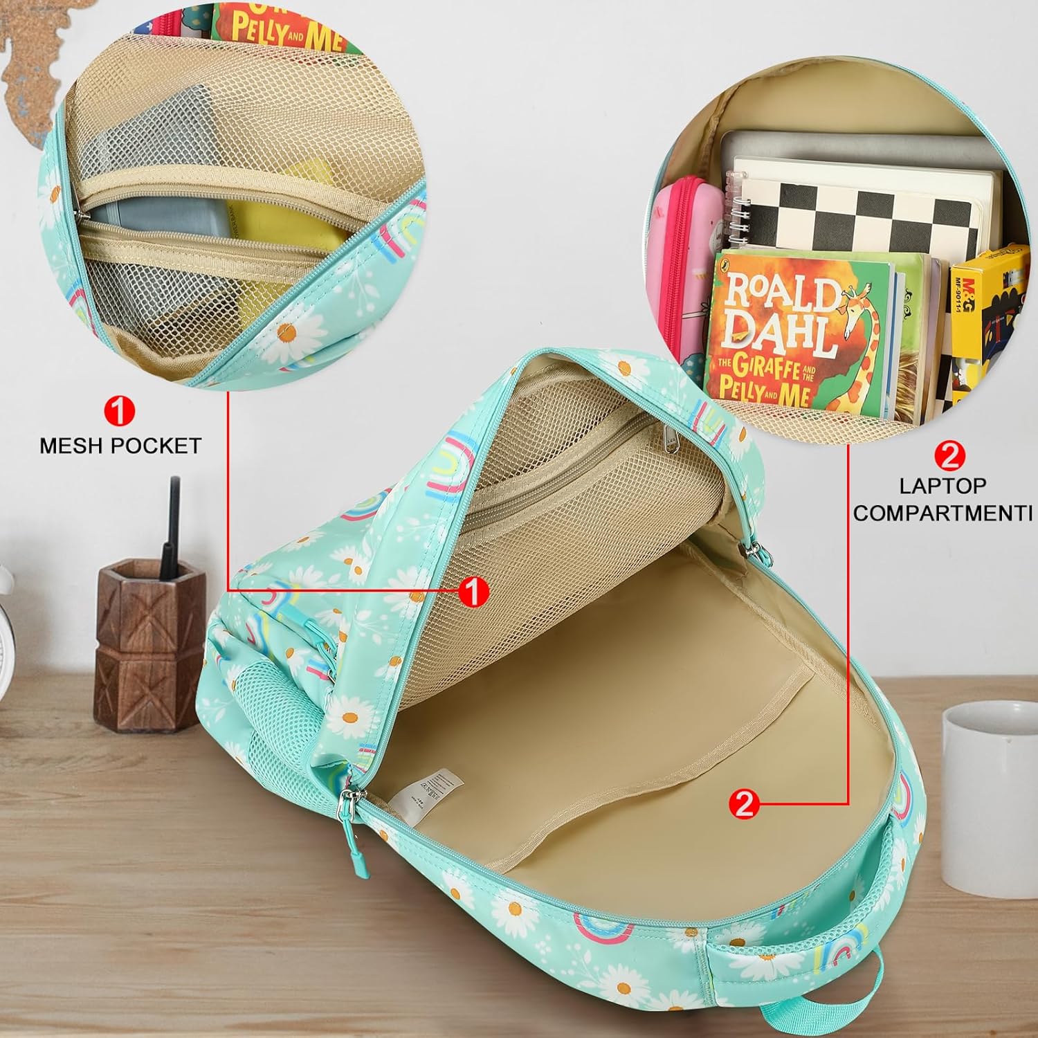 A mochila prática para meninas tem bolsos multicamadas que podem satisfazer o material escolar de suas meninas. Compartimento separado com capa para laptop de 15 polegadas, protege a segurança do laptop, não se preocupe, o laptop se moverá balançando para cima e para baixo durante a corrida.
