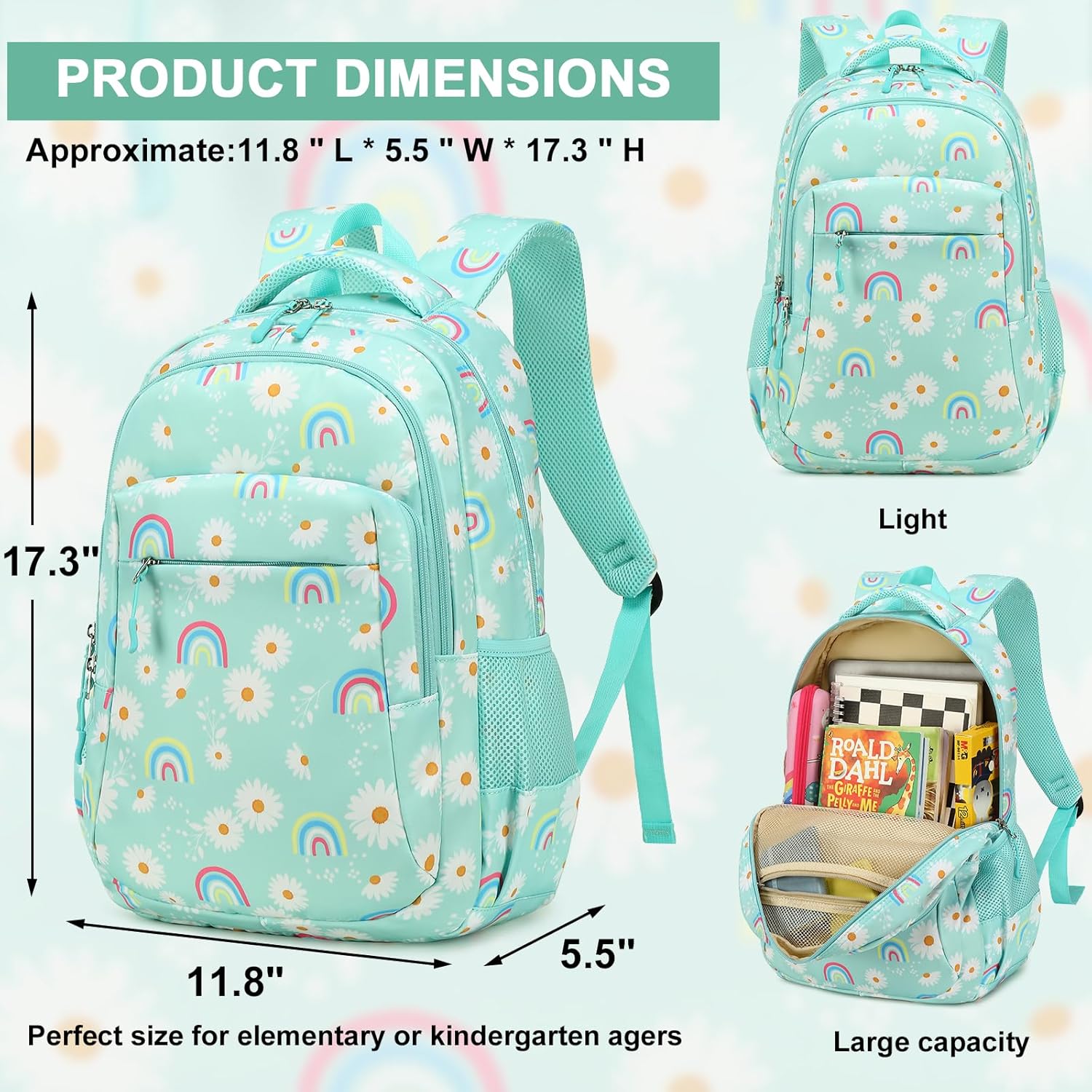 Mochila de grande capacidade para meninas: Tamanho: 42 cm x 31 cm x 12 cm. Bolsos multicamadas com diferentes funções, muito espaço para guardar material escolar, como livros, laptop de 38 cm, arquivo A4, garrafa de água, lancheira, lápis. Idade recomendada: acima de 3 anos.