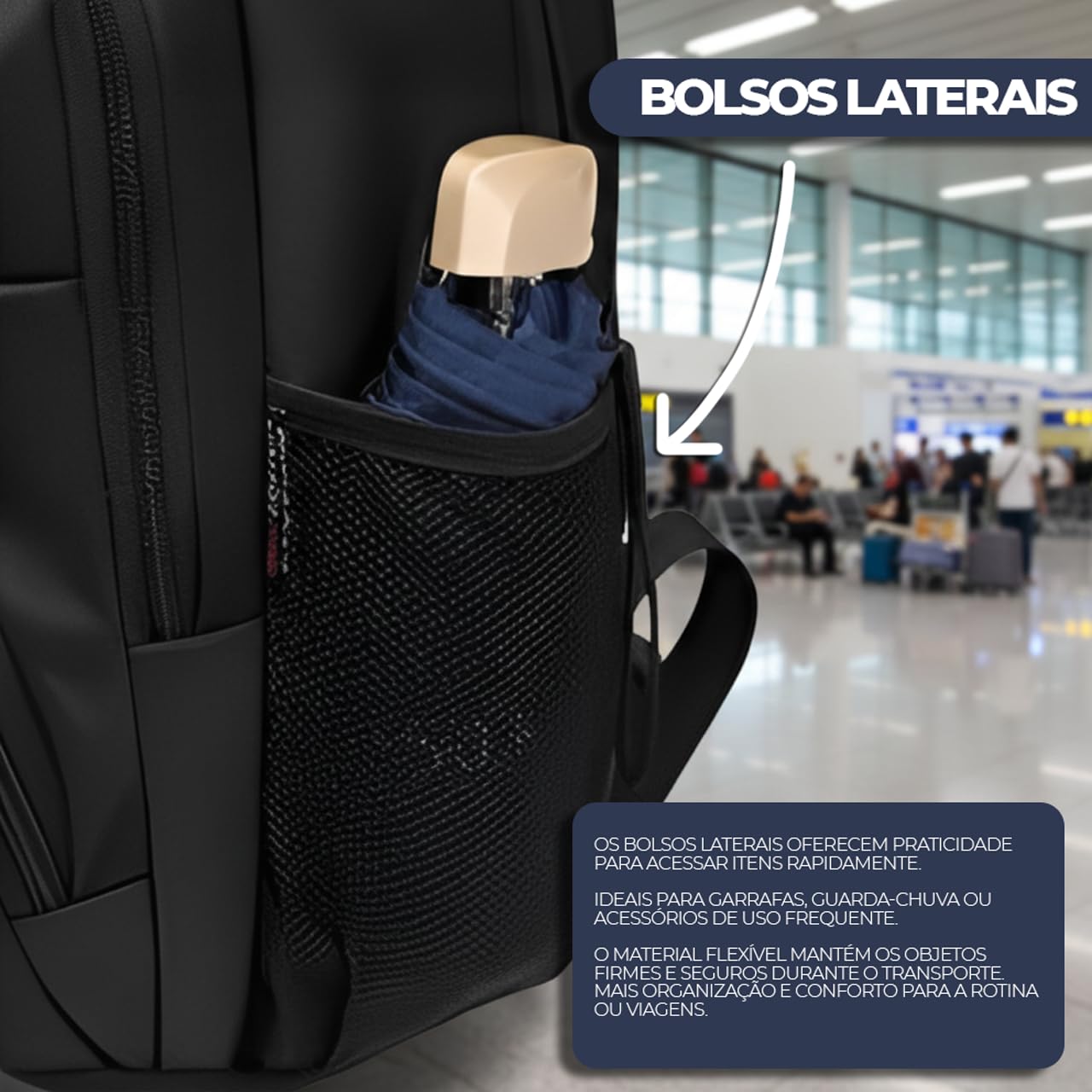 - Mochila Impermeável e resistente, protegendo seus itens em qualquer clima.