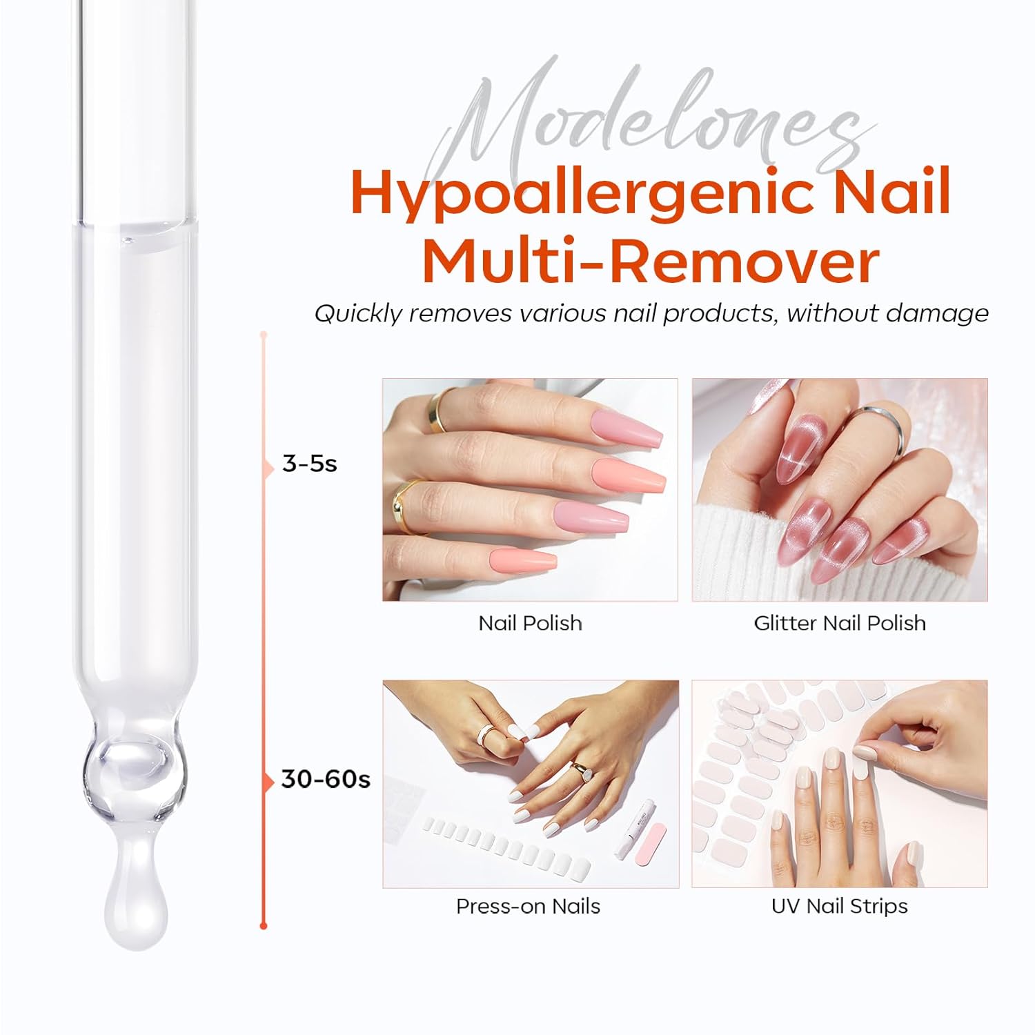 modelones Removedor De Esmalte Modelones Sem Acetona, Fácil Remoção Para Tiras De Unha E Unhas Postiças, Removedor De Cola De Unha, Soro De Fórmula Natural Para Hidratação E…