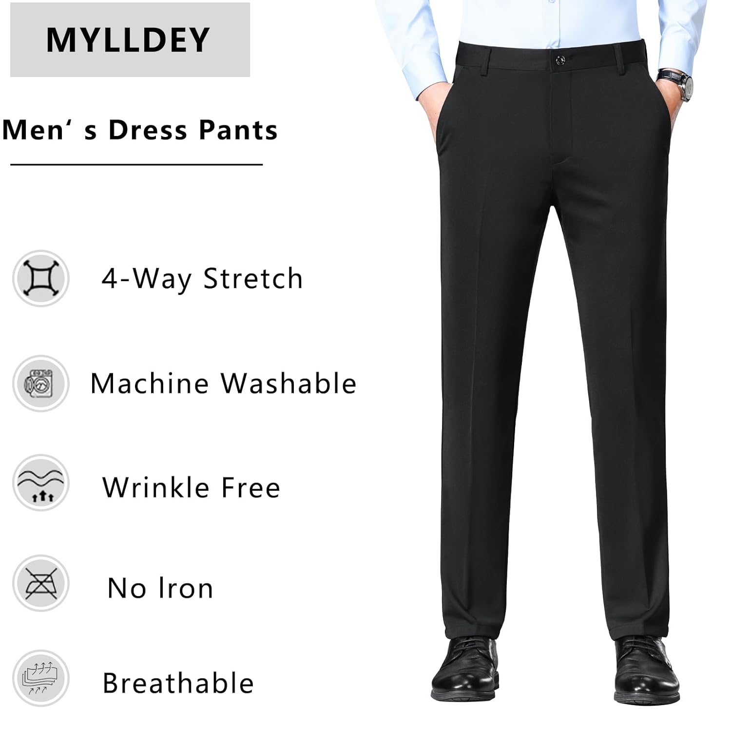 Mylldey Calça social masculina slim fit, casual, negócios, frente lisa, leve, sem rugas, confortável