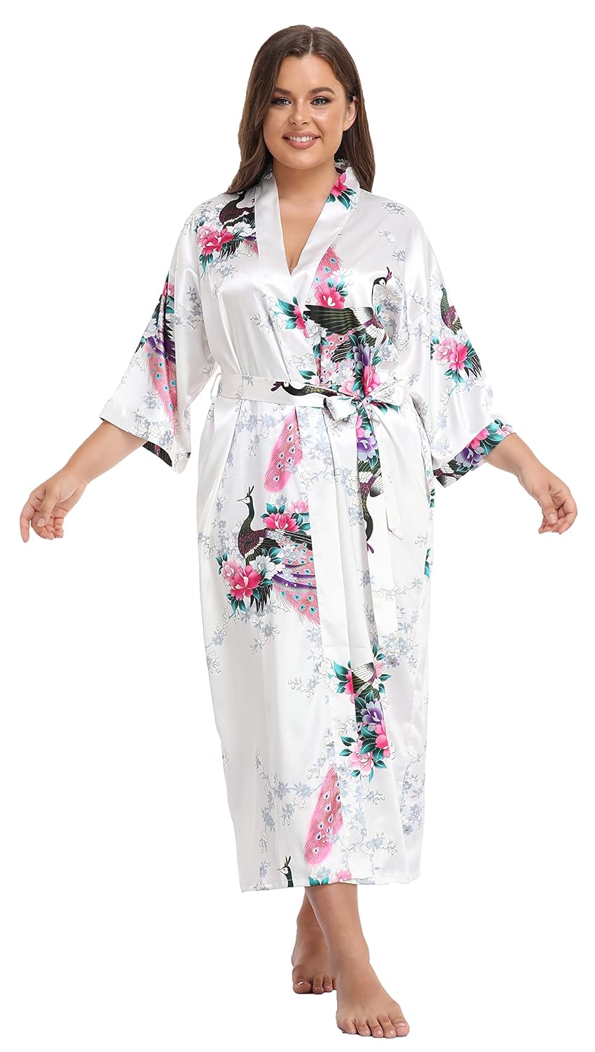 - QUIMONOS DE QUALIDADE: Nosso roupão quimono é feito de 100% cetim. Vestido quimono de estilo longo, macio, leve e confortável, até o tornozelo com fecho de faixa, passadores de cinto e laços internos.