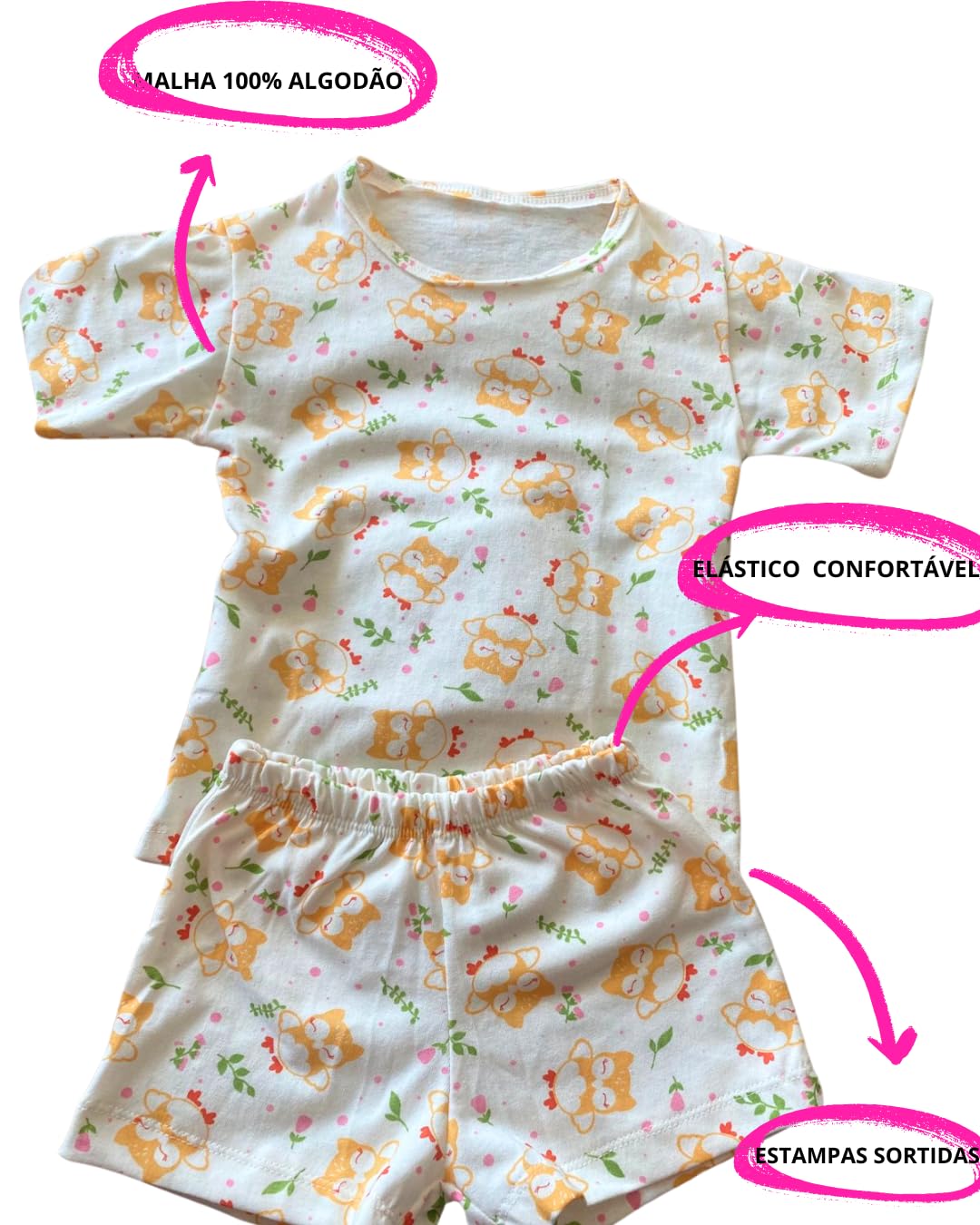 Pijama Manga Curta Feminino Infantil Menina 02 Ao 16 100% Algodão Toque Macio Confortável