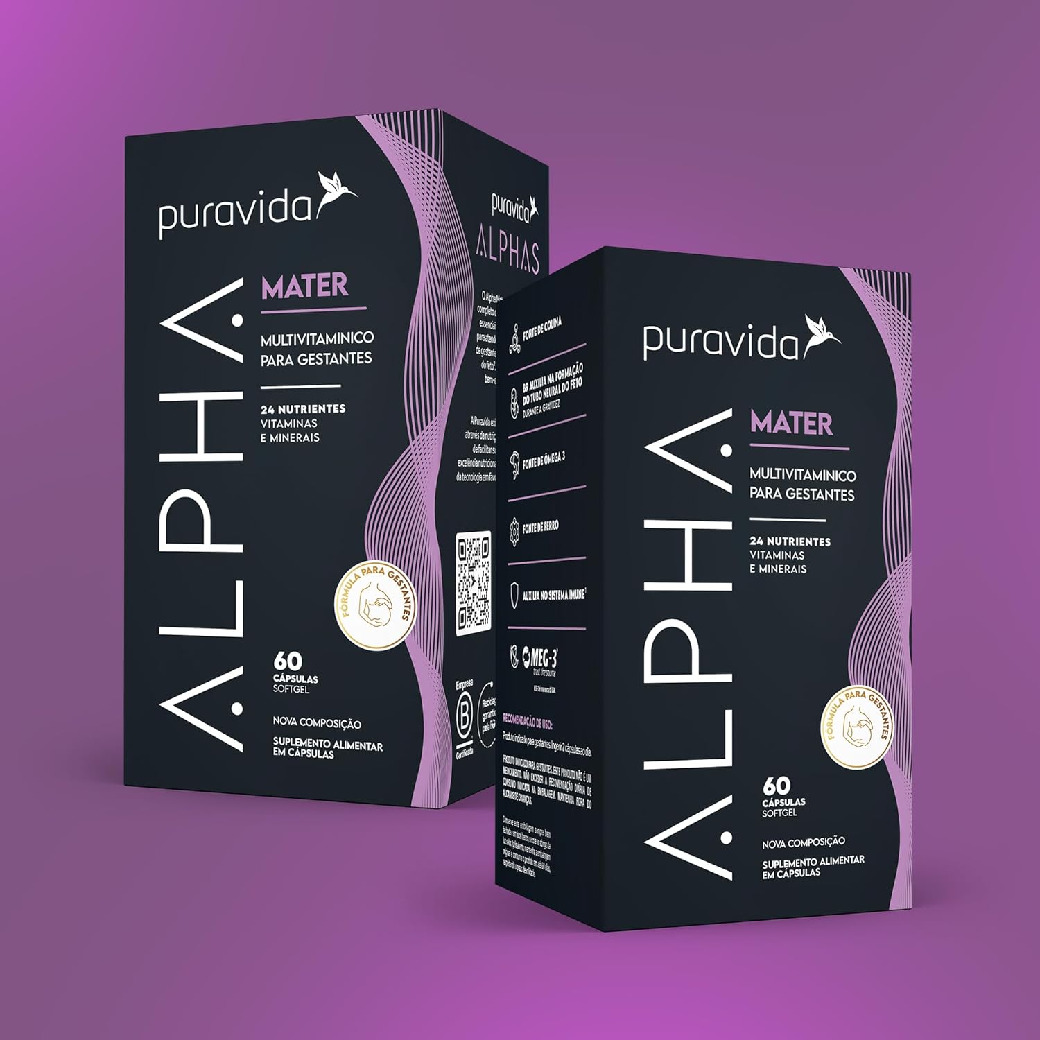 Puravida Vitaminas e Ômega 3 para Gestantes Alpha Mater 60 Cápsulas