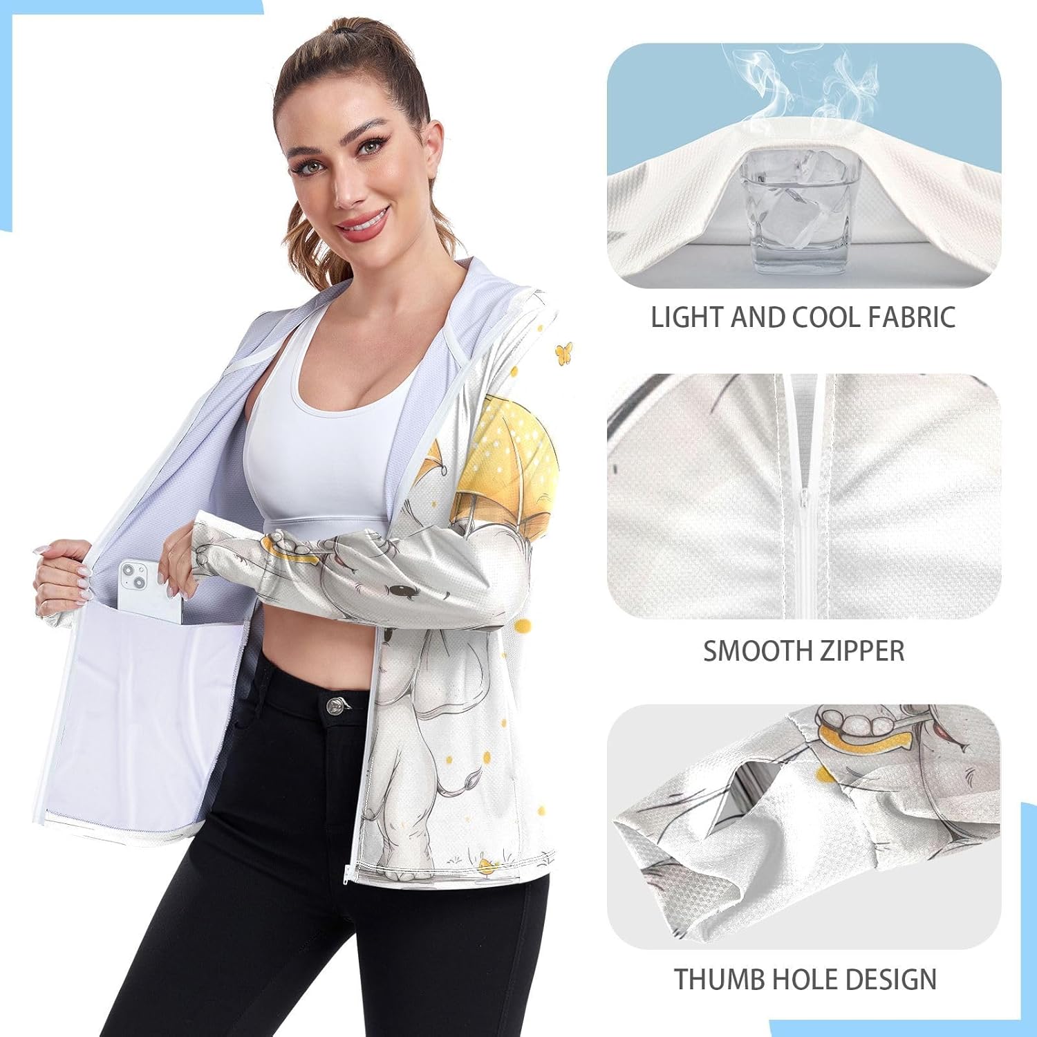 Qilmy Lindo bebê elefante feminino FPS 50+ proteção solar UV moletom com capuz FPS manga longa camisa de sol 499