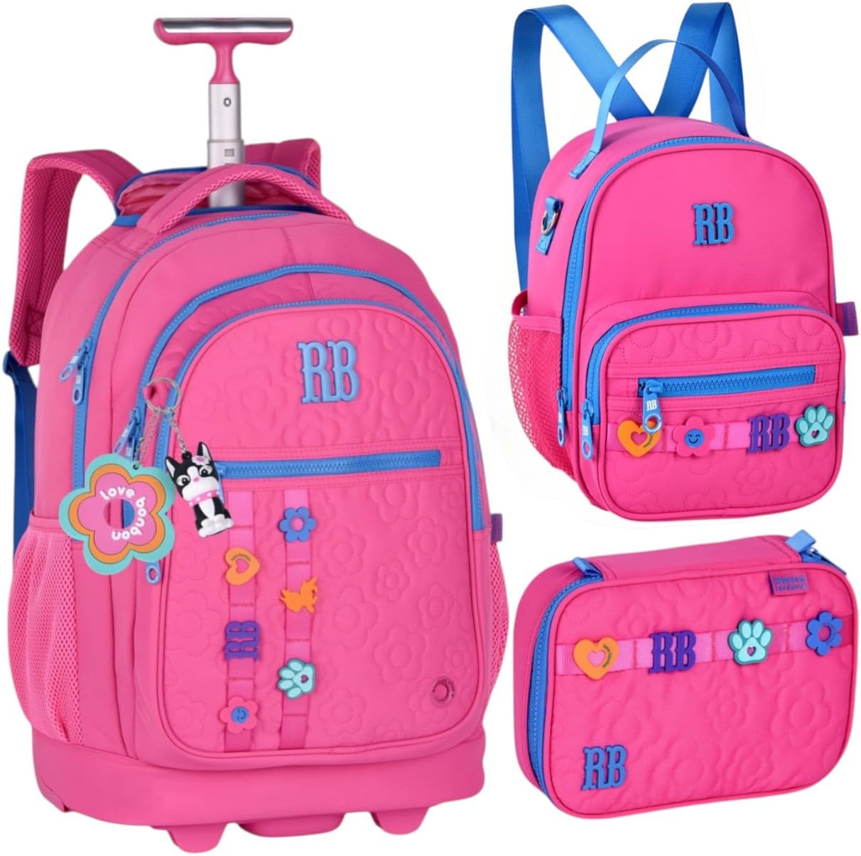 Especificação: Rebecca Bonbon Kit Mochila Escolar com Rodinha, Lancheira e Estojo, 3 Peças, Poliéster, 45x35x22cm, Design RB Bonbon Lovers