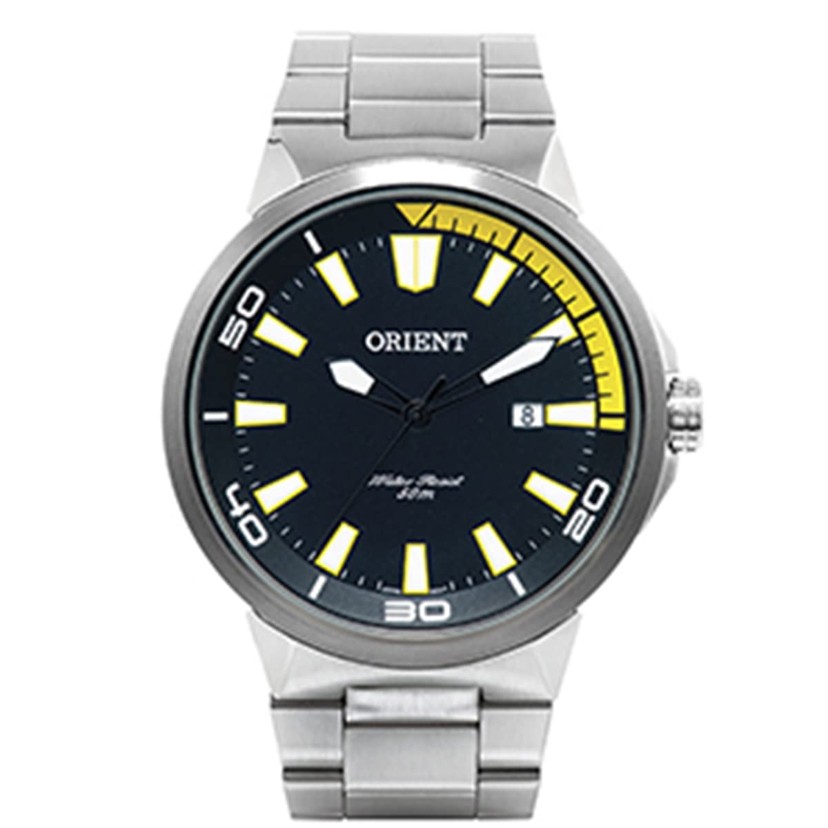 A marca Orient dispensa comentários; é uma marca de tradição e qualidade. Quanto ao modelo, ele é relativamente grande e não cairá bem para pessoas magras; é discreto e elegante. O ponteiro de segundos é preto assim como o fundo tornando-o quase invisível; parte dos ponteiros também são pretas e pode dificultar a leitura em ambientes mais escuros, embora as marcações das horas e minutos bem como as pontas dos ponteiros brilham no escuro. Tudo isso faz parte do seu desing discreto. O detalhe em azul (há também em outra cor) é um detalhe que confere um tom de modernidade. Tem as funções básicas: horas, minutos, segundos e calendário apenas com marcação de dias. Estamos falando de um produto de “entrada” com preço acessível e de uma marca respeitada. Vale muito a pena. Uma coisa que falta, principalmente nos relógios com pulseira de aço, é um sistema de ajuste fácil da pulseira. Neste modelo tem que sacar o colocar “gomos”; isso torna o processo pouco preciso e não permite um ajuste ideal.