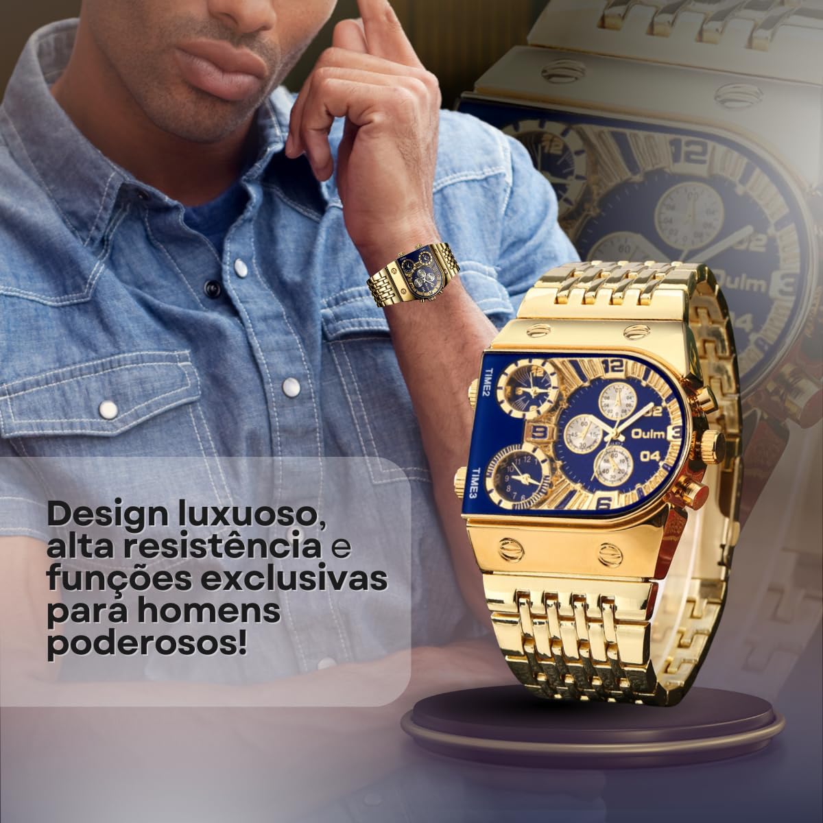 - Um relógio masculino de luxo, diferente de tudo que você já viu! Com design sofisticado, moderno e poderoso, conta com qualidade premium, 3 fusos horários, ponteiros luminosos, tecnologia resistente à água, pulseira em aço inoxidável de alta resistência e visor Hardlex resistente a riscos, choque e impacto;