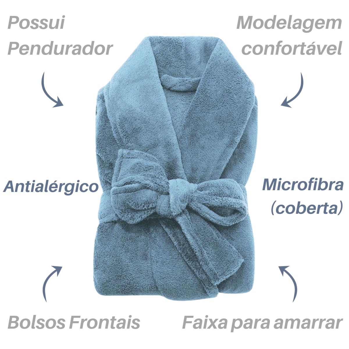 - Tecido de Microfibra: Confeccionado em microfibra de poliéster, o roupão oferece um toque macio e aconchegante, com efeito coberta para maior conforto térmico.