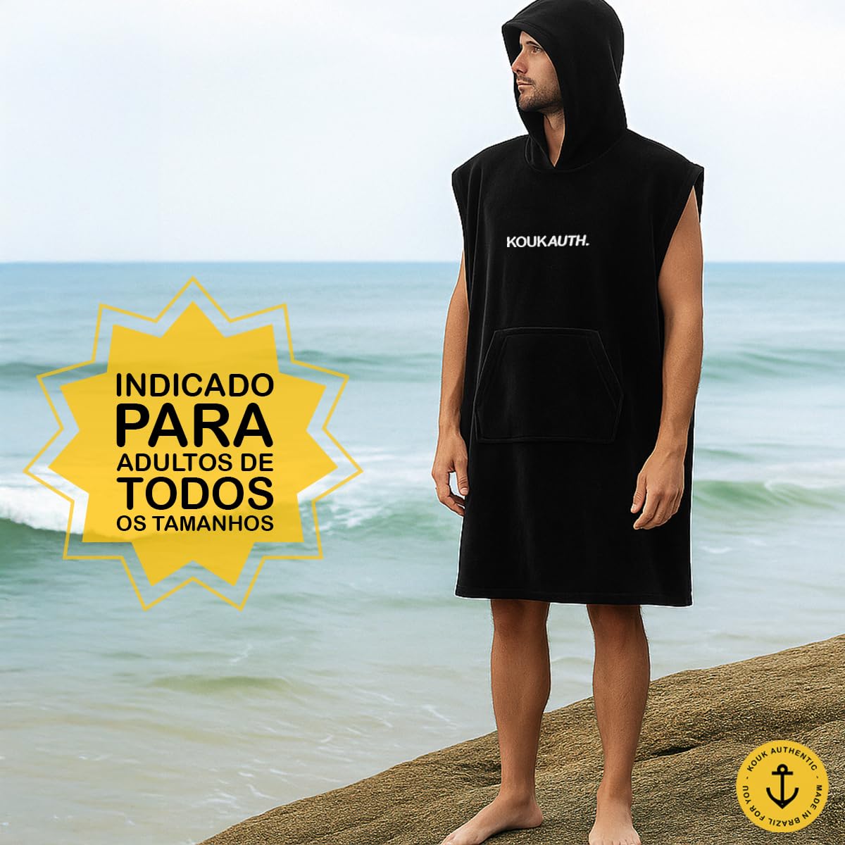 - Conforto total com tecido plush – Fabricado em plush leve e macio, o poncho oferece aquecimento ideal para dias frios e um toque aveludado ao corpo, proporcionando bem-estar após o banho ou esportes.