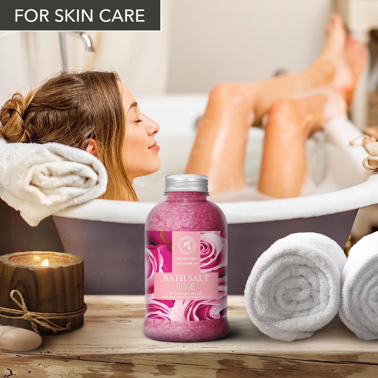 • Os sais de banho de rosa com sal aromático ajudam a eliminar a fadiga e relaxar.