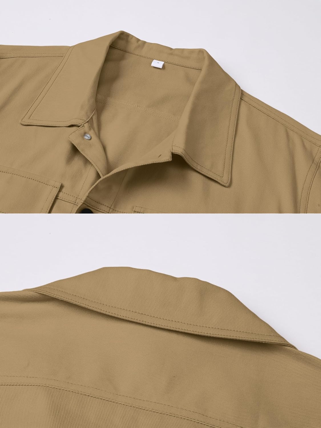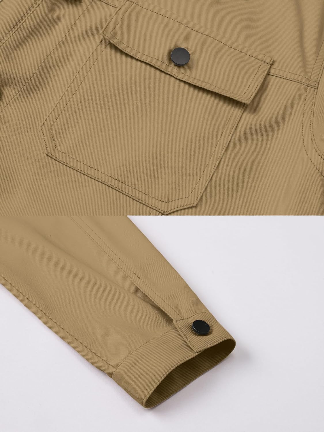 SANGTREE Jaqueta Jeans Masculina Casual, Estilo Trucker Clássico, Manga Longa, com Botões, Cor Cáqui, Tamanho Pequeno.