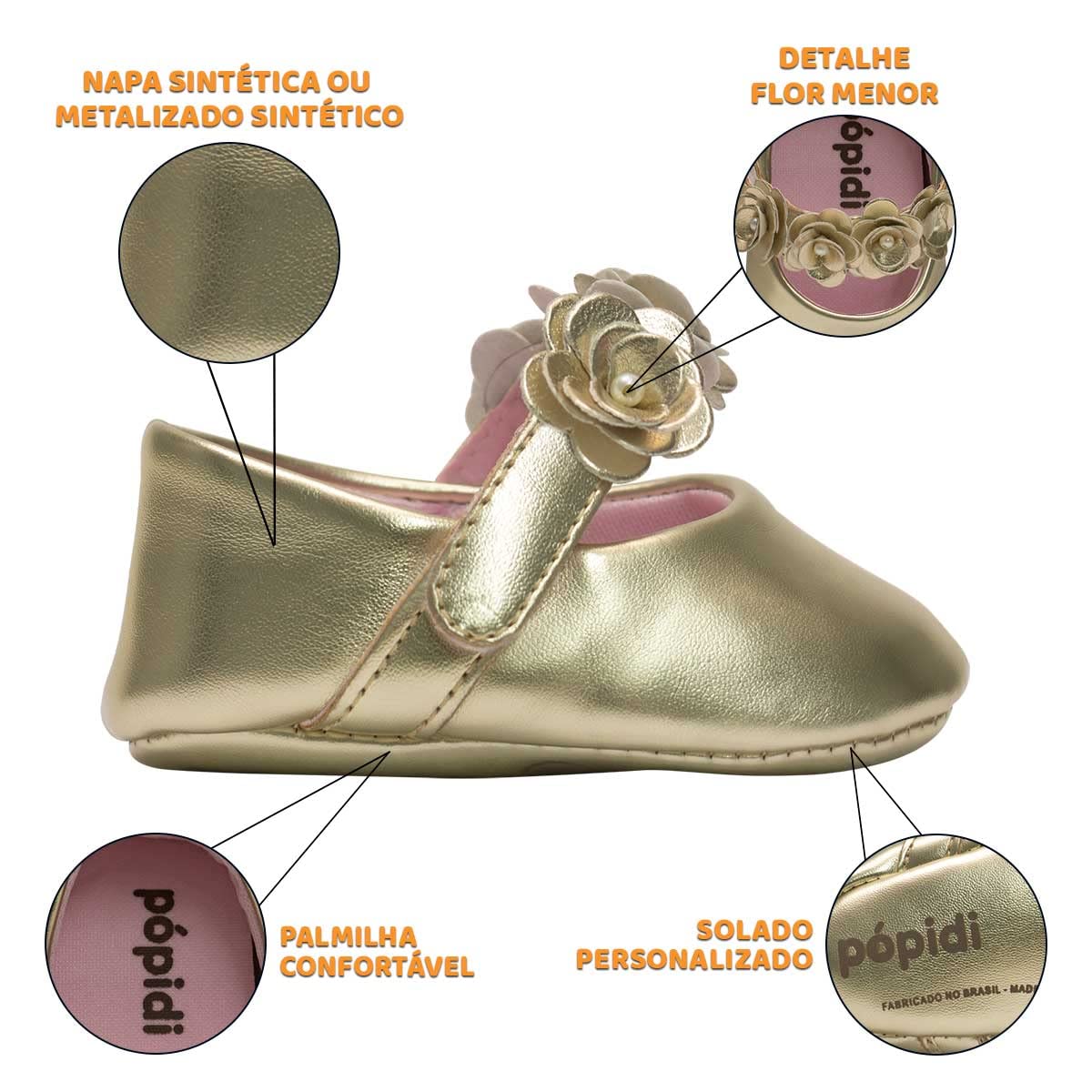 - Material da Sola: Napa Sintética ou Metalizado Sintético