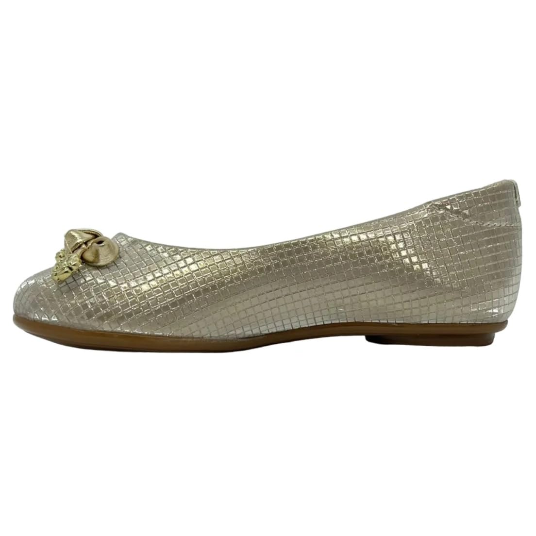 - Sapatilha Molekinha Infantil Metalizada com Laço A Sapatilha Molekinha Infantil é confeccionada em material sintético, possui solado em PVC, tecnologia calce fácil e palmilha muito macia. Além disso ela é perfeita para garantir muito charme e estilo para os pés das meninas modernas. Com design atual, ela é toda metalizada, uma ótima opção para compor lookinhos cheios de personalidade para diversas ocasiões. Aproveite e adquira já! Nome: Sapatilha Molekinha Infantil Metalizada com Laço Código: 20831106 Cor: Dourado Gênero: Feminino Indicado para: Crianças Material: Sintético Solado: PVC Altura do Salto: 1 cm Largura da Sola: 6,5 cm Bico: Redondo Peso: 75 g (O peso do produto