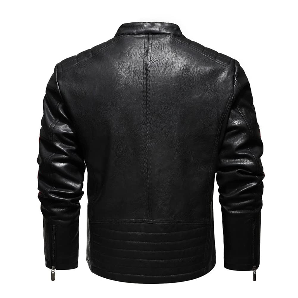 SevenDwarf Jaqueta masculina de couro sintético para motocicleta à prova de vento vintage casual gola alta Jaqueta de couro sintético com forro sherpa