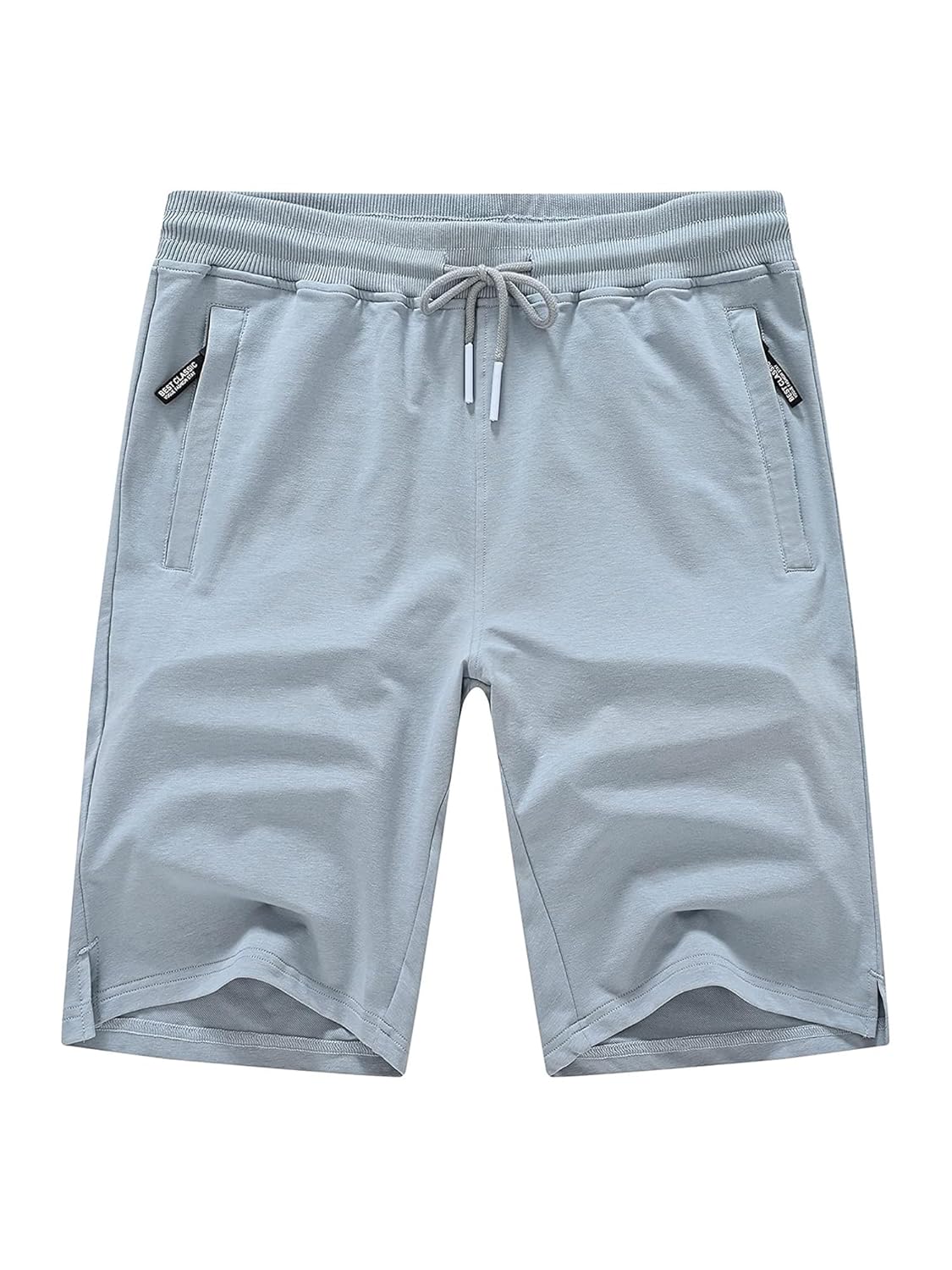 Shorts masculinos de algodão Casaul com cordão, bolsos com zíper, cintura elástica para esportes