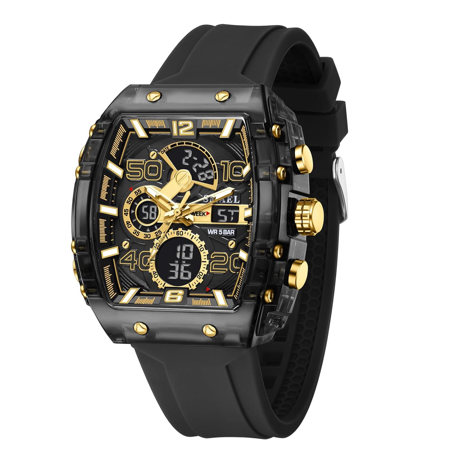 - Relógios masculinos esportivos de lazer: movimento digital de qualidade premium, mostrador fácil de ler, caixa de tom preto de 50 mm, visor prático e multifuncional, o relógio refinado agracia o uso diário dos EUA.